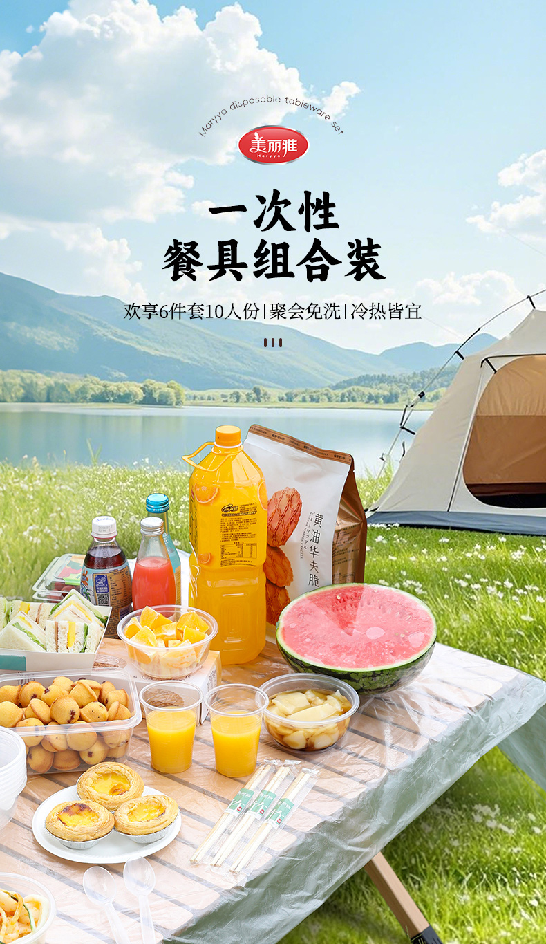 【批发】美丽雅一次性餐具组合餐具套装10人份/袋