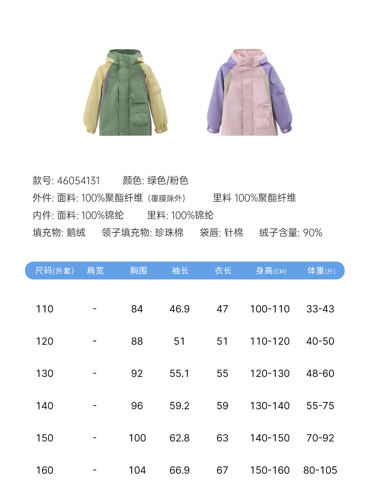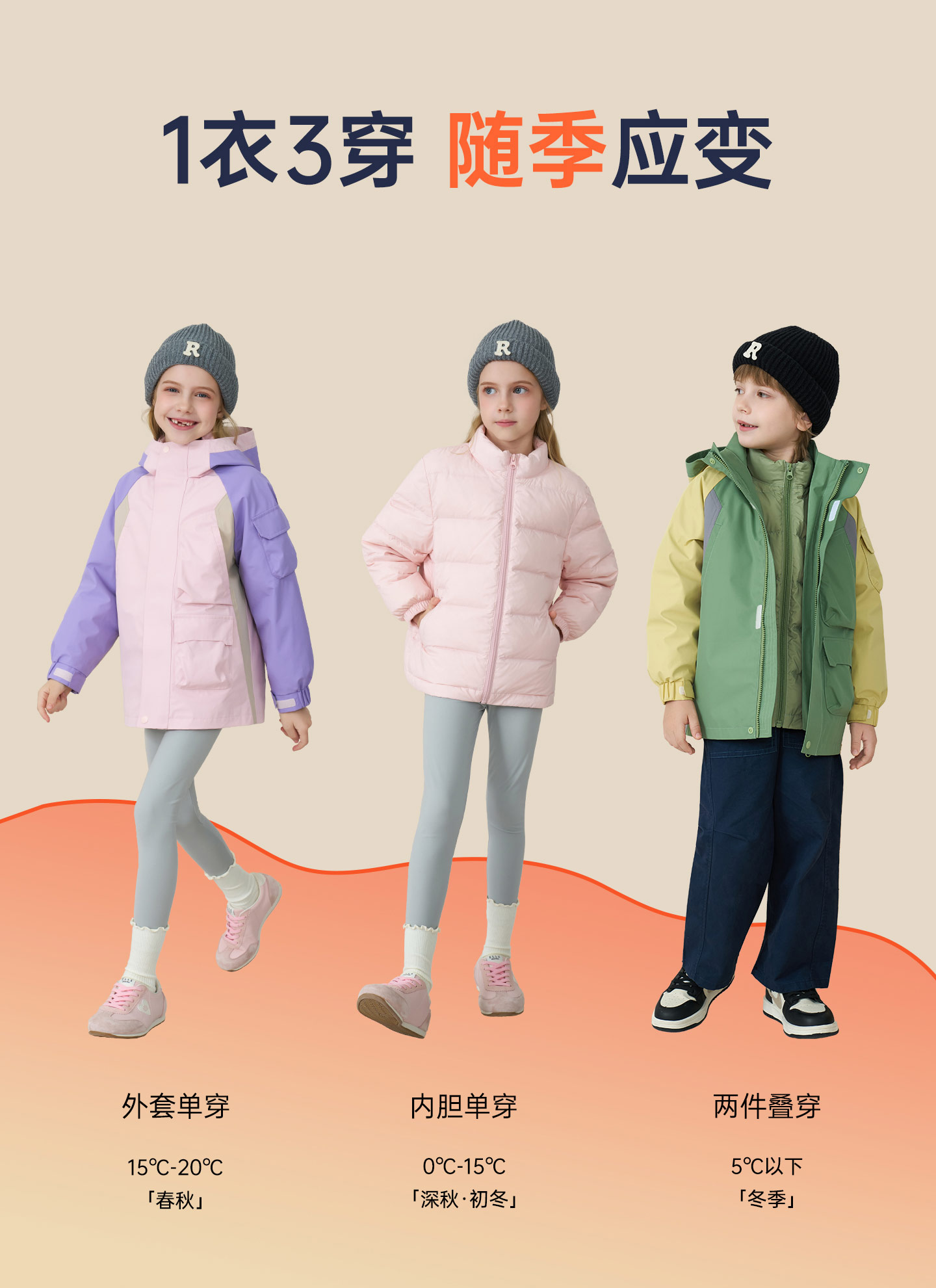 【鹅绒】儿童羽绒服秋冬款男童户外三合一冲锋衣风衣女童保暖外套