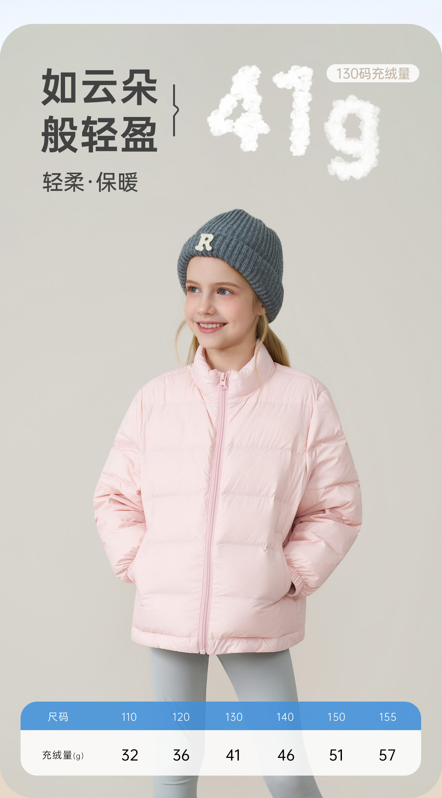 METTE童装轻薄羽绒马甲秋冬男女童保暖背心时尚简约纯色立领外套