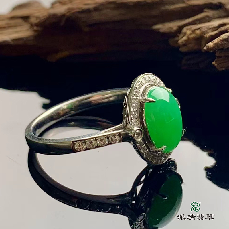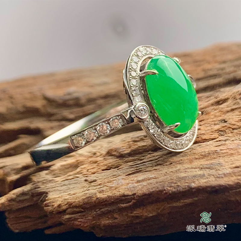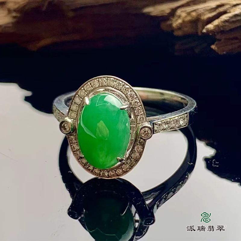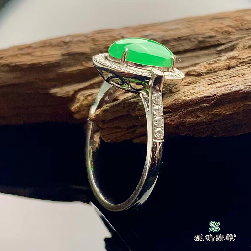 派瑞翡翠 18k金翡翠戒指 糯种 阳绿色