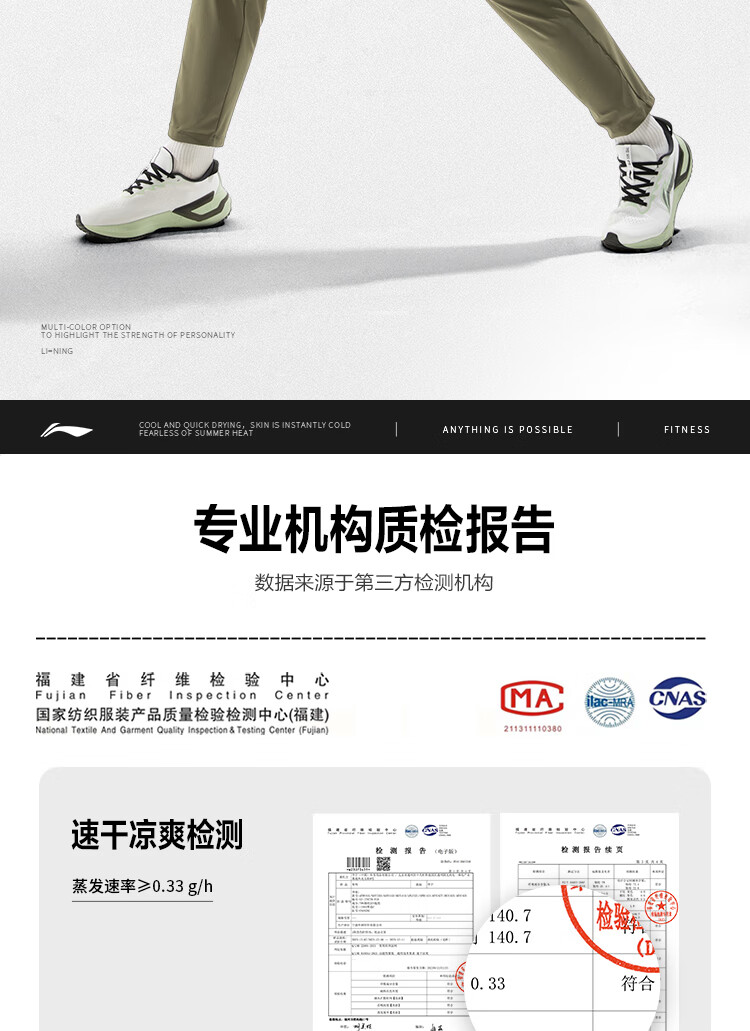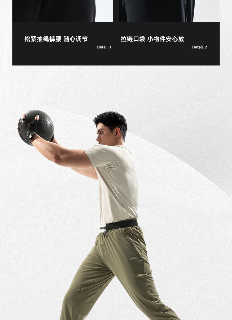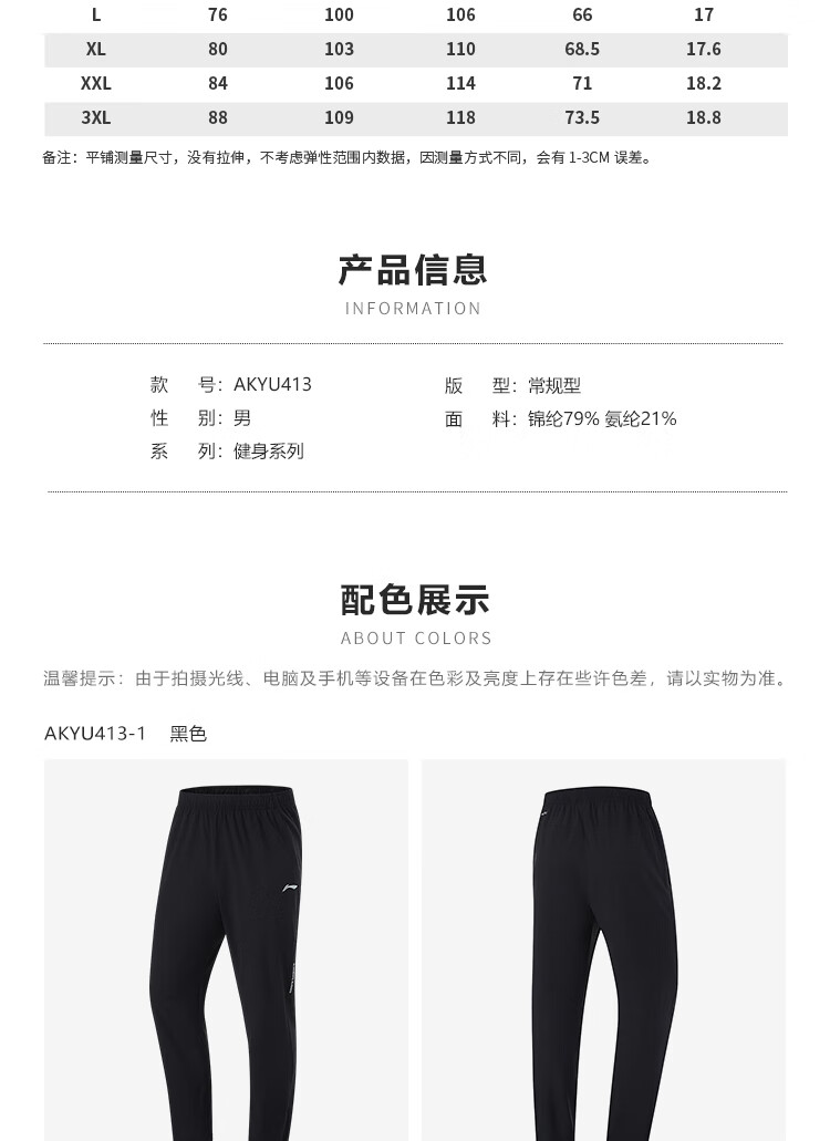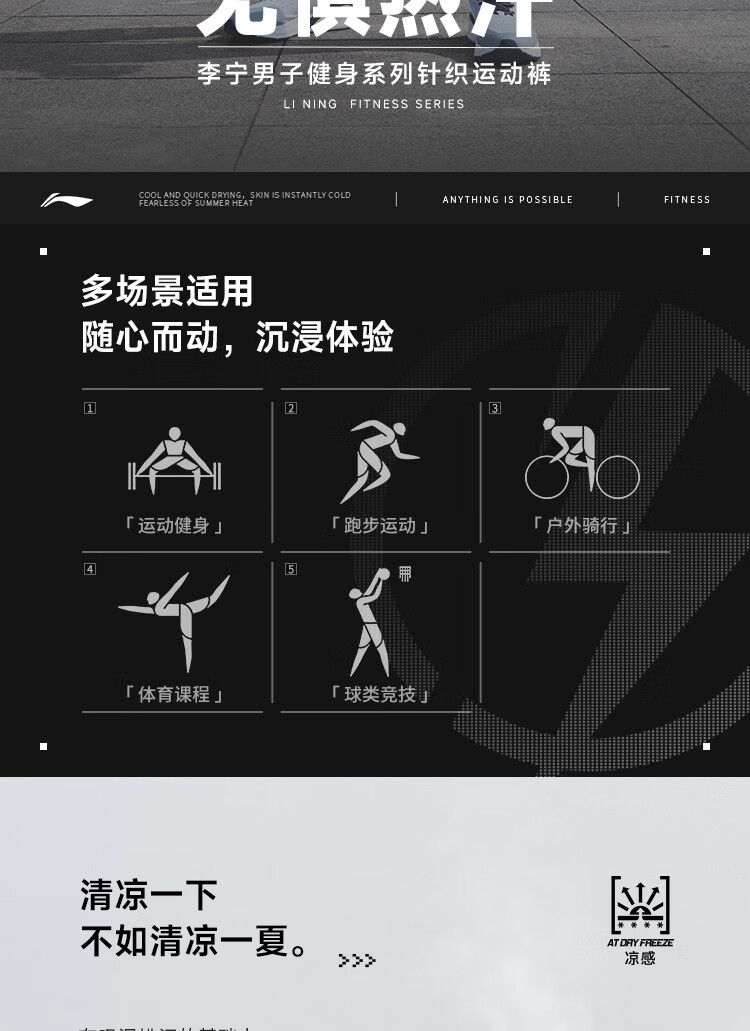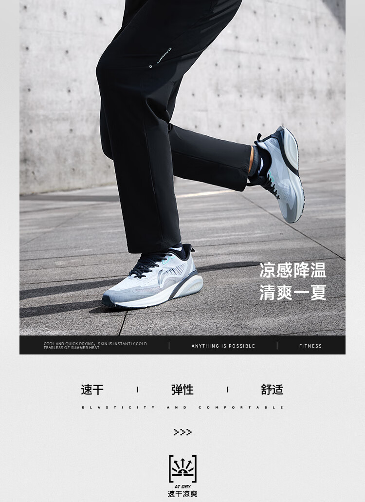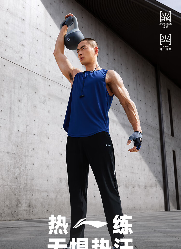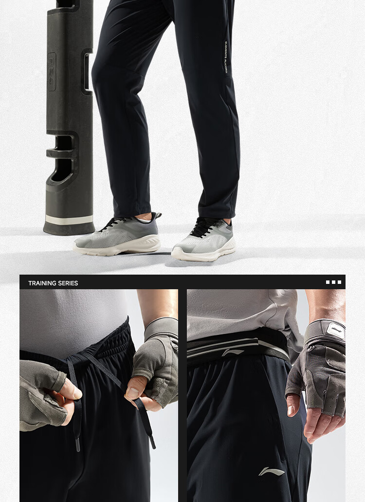 李宁健身系列男子直筒冰感舒适凉爽针织运动裤 黑色AKYU413
