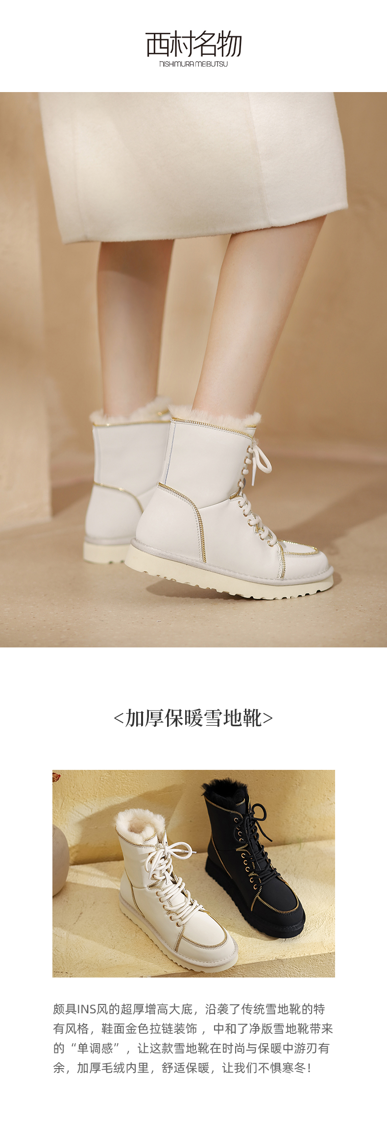 西村名物2021冬季新款气场全开英伦风复古系带马丁靴雪地靴T21DS45151