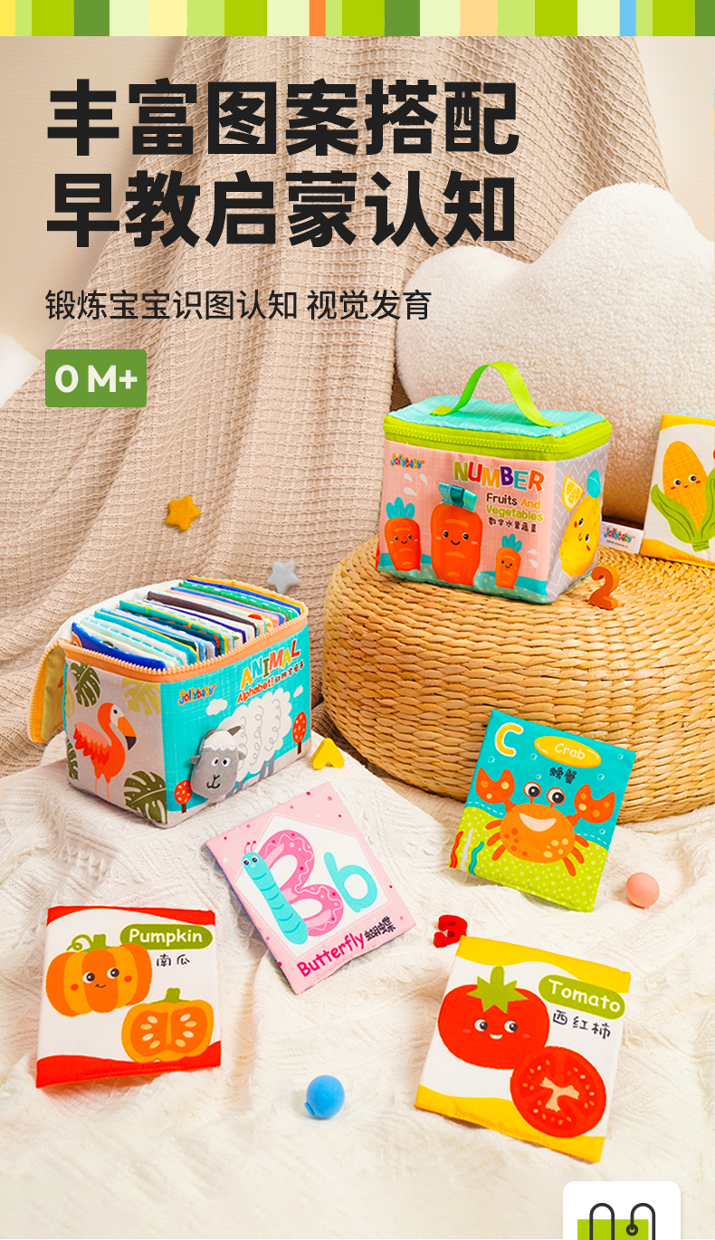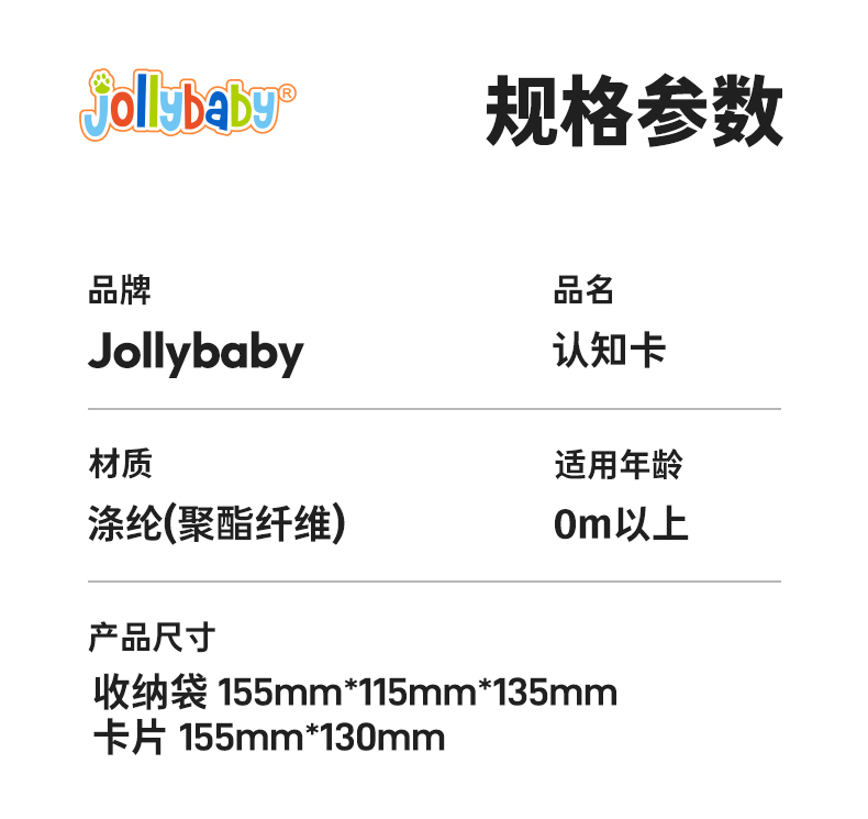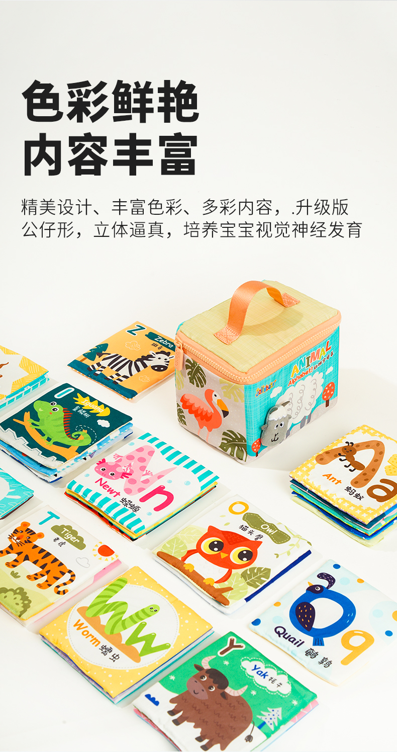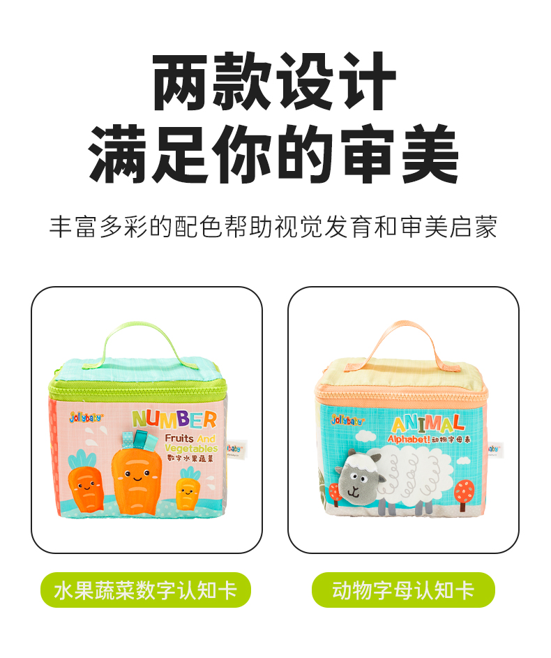 Jollybaby儿童布书认知卡追视彩色看图识字宝宝早教婴儿闪卡玩具