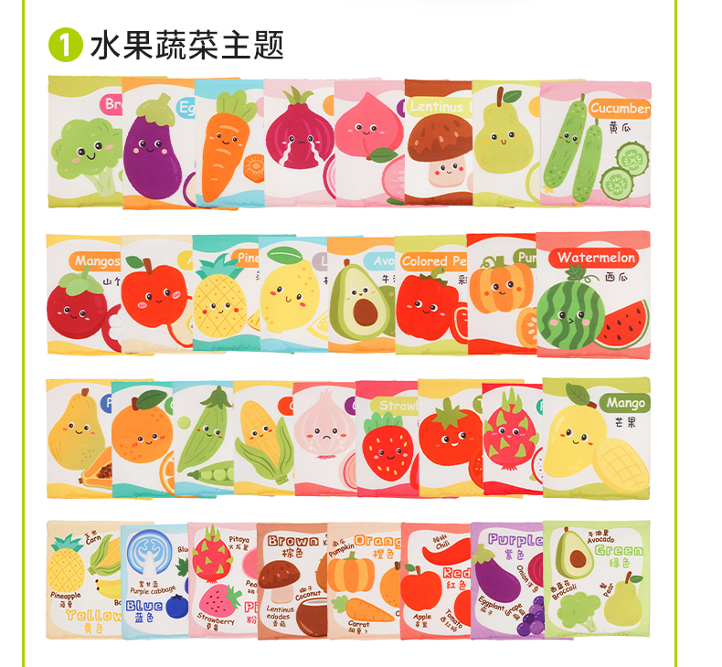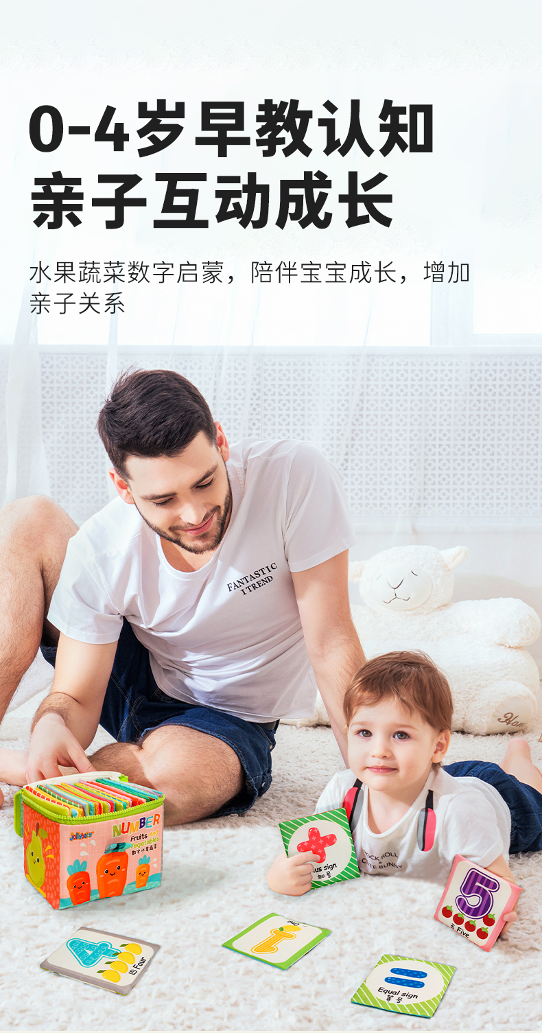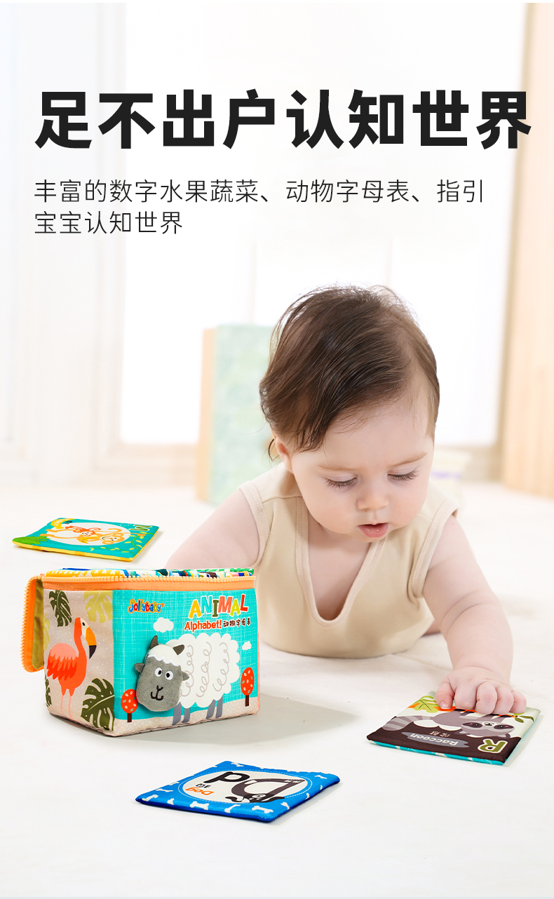 Jollybaby儿童布书认知卡追视彩色看图识字宝宝早教婴儿闪卡玩具