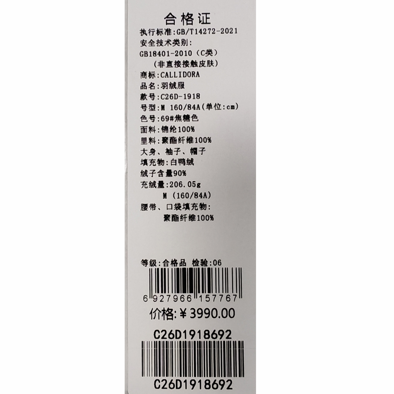 卡莉朵拉羽绒服C26D1918
