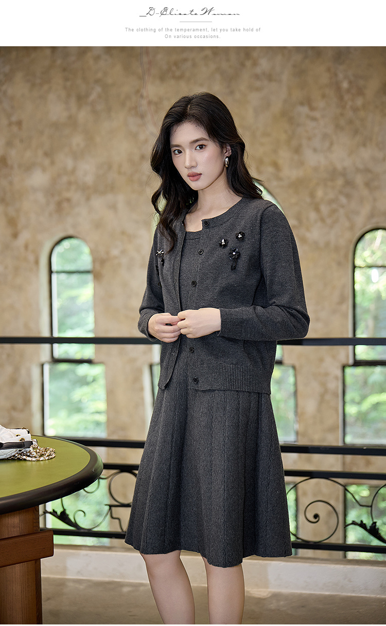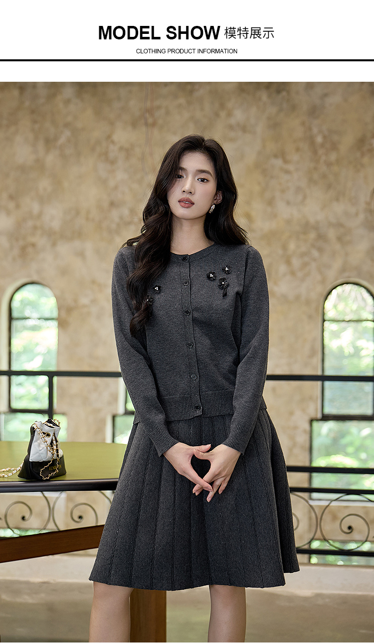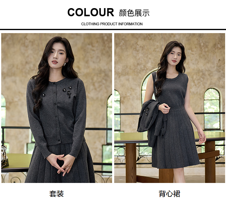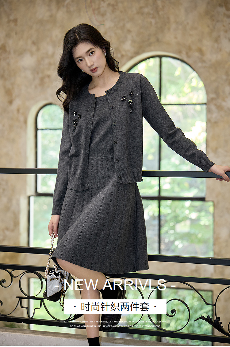 奢姿大码女装2025秋季减龄立体装饰圆领两件套胖妹妹时尚针织套装9853991012AB