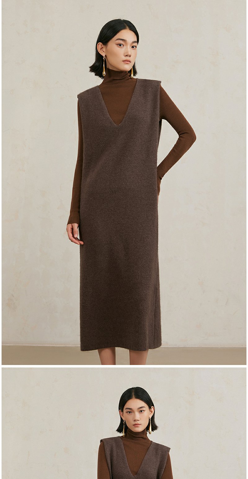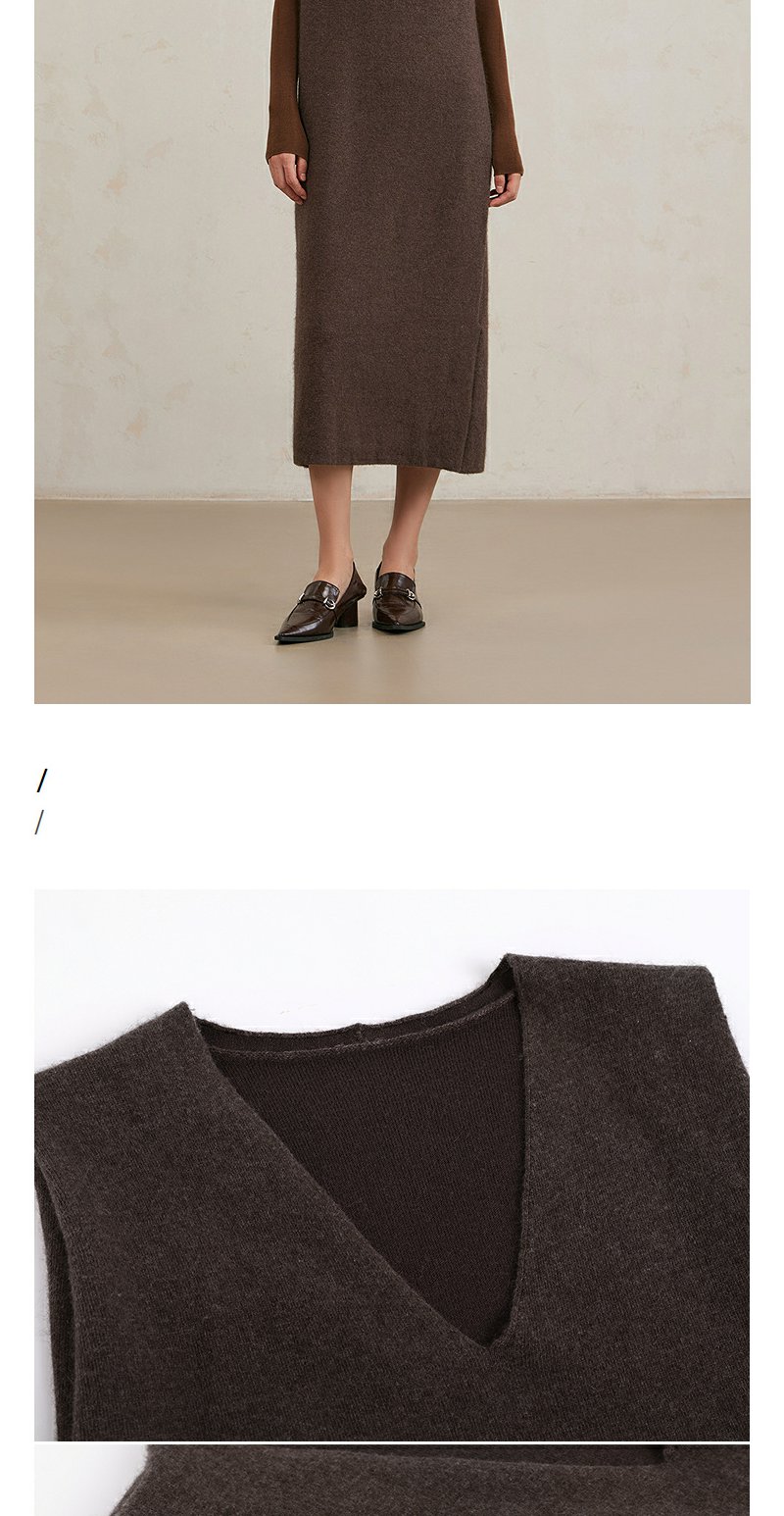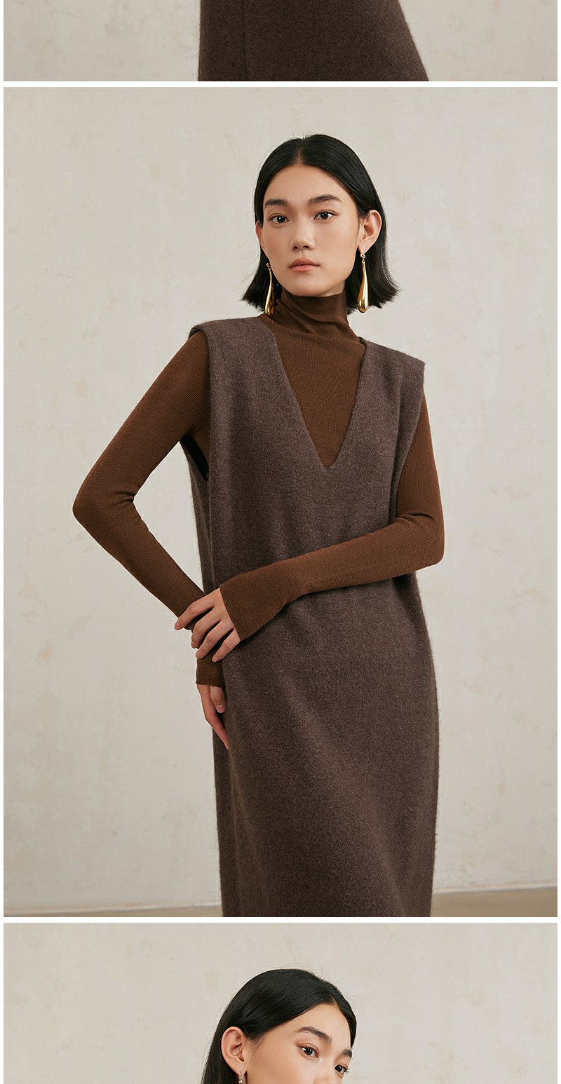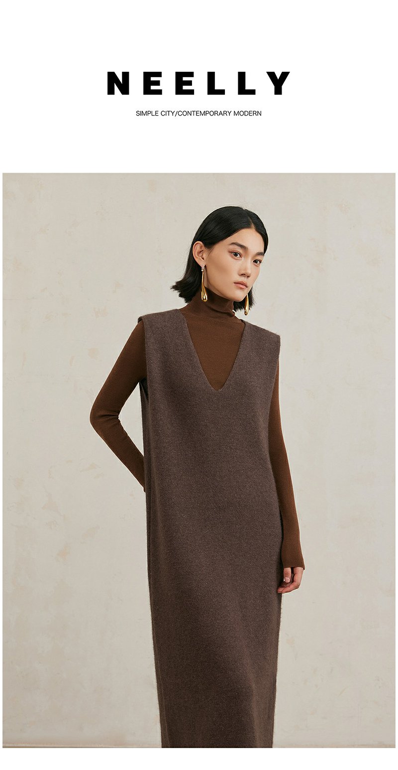 NEELLY纳俪商场同款冬季新款美拉德法式气质V领背心针织连衣裙女N25104Y04520