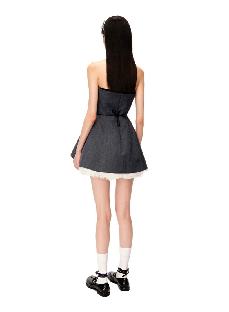 【SHUSHUTONG】蕾虎设计感甜美时尚抹胸蓬蓬两件套A字裙 商品图0