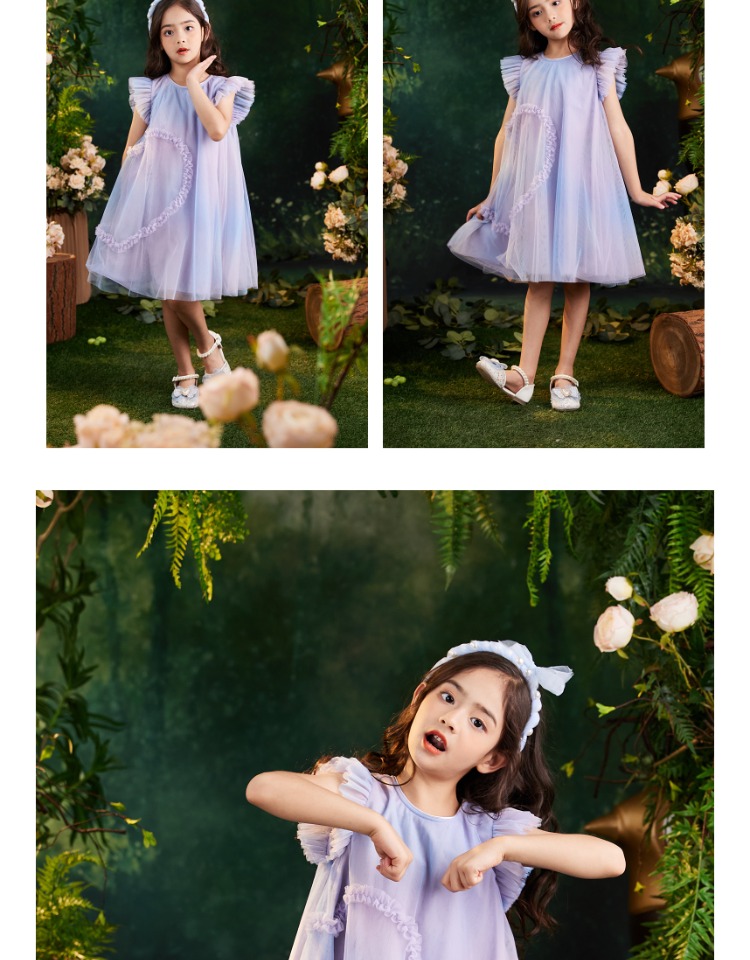 littletime女童渐变色纱裙连衣裙2023夏装新款韩版洋气儿童公主裙