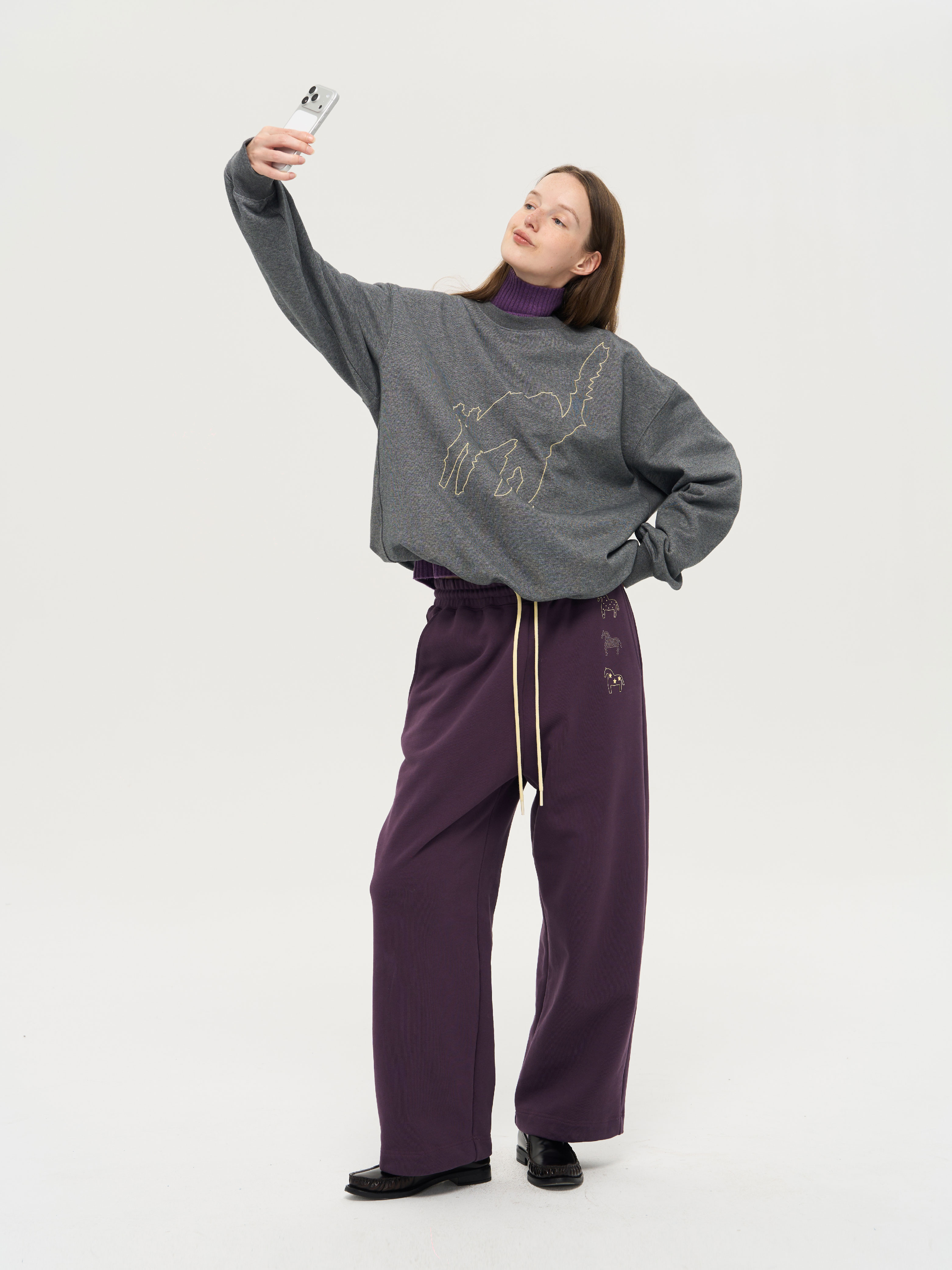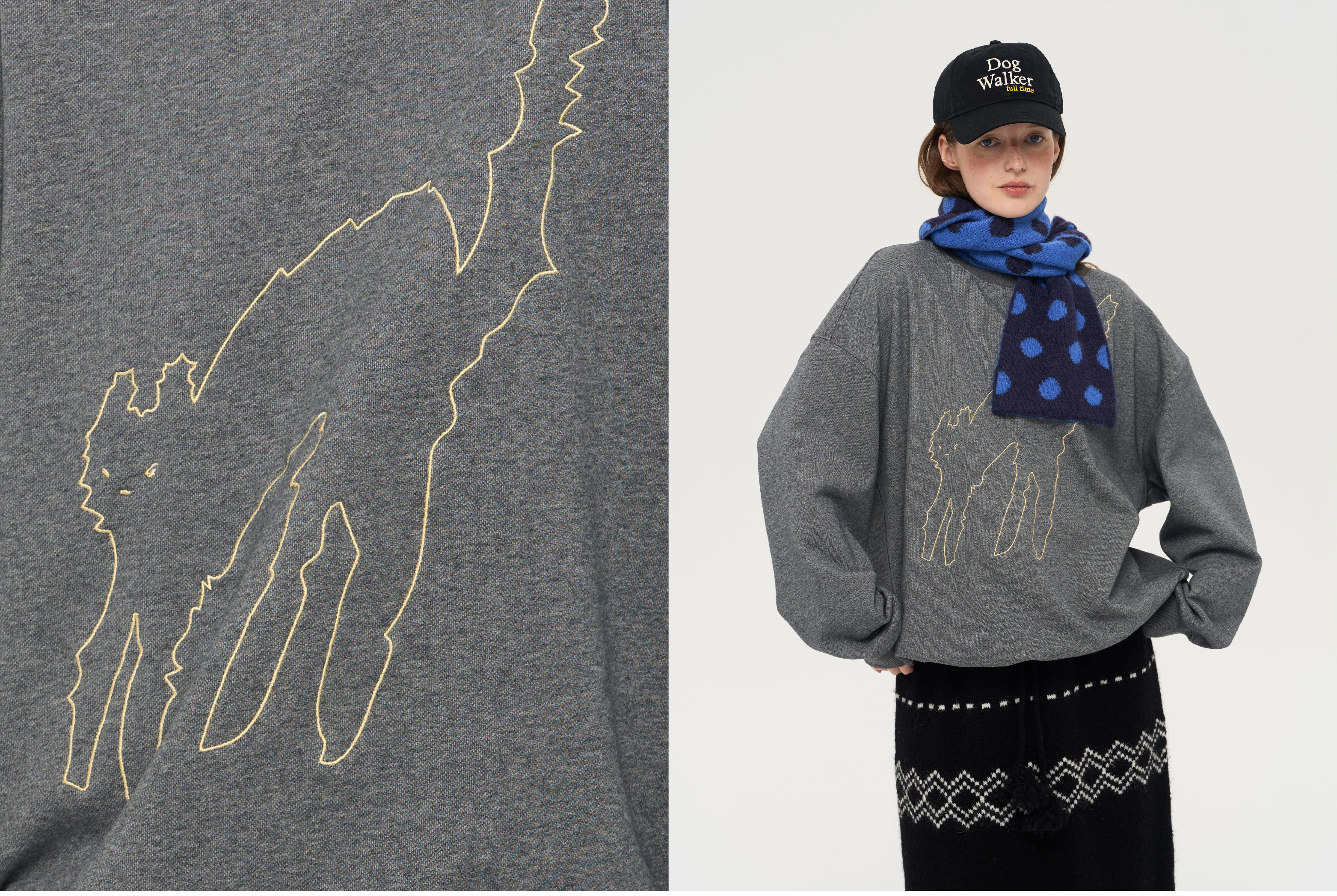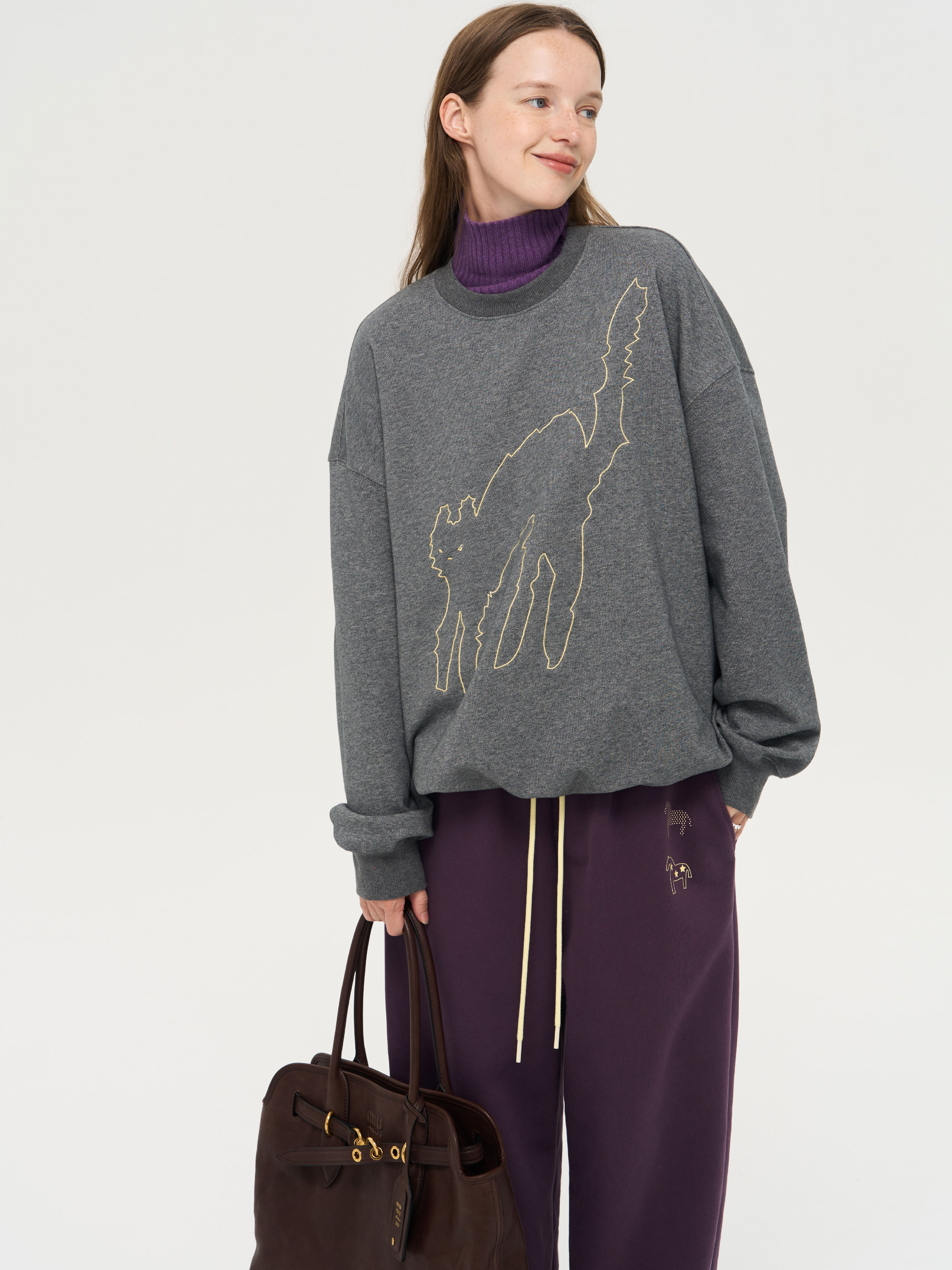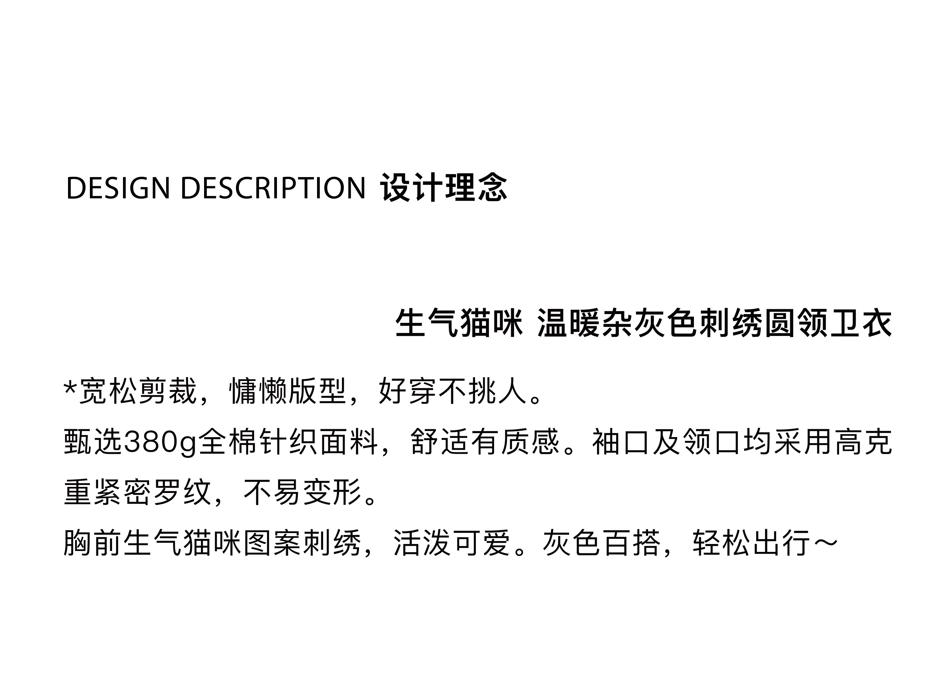 local tag/lt25awk62/生气猫咪 温暖杂灰色刺绣圆领卫衣