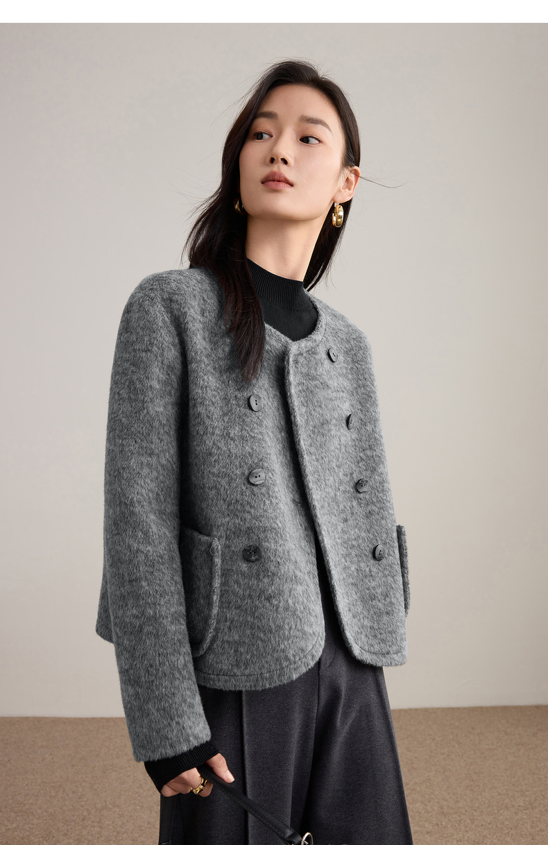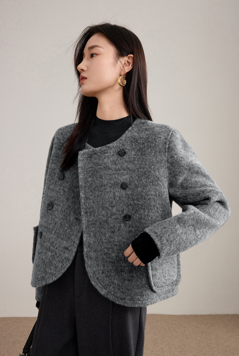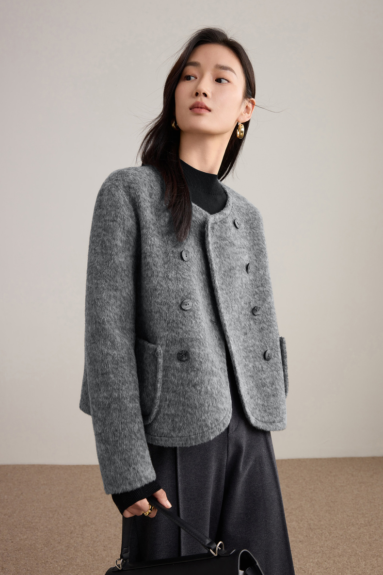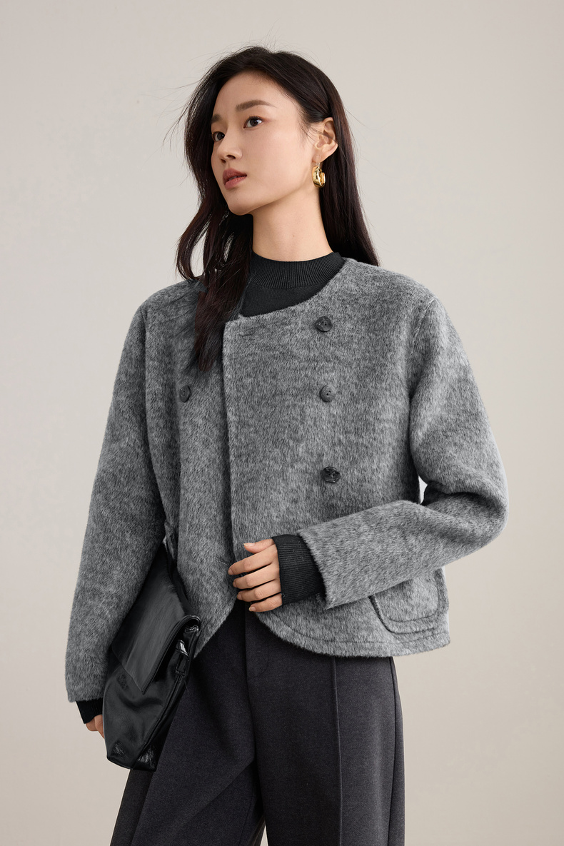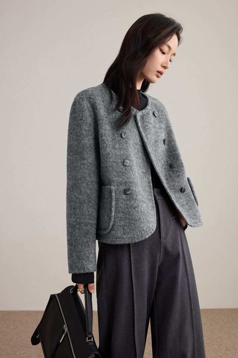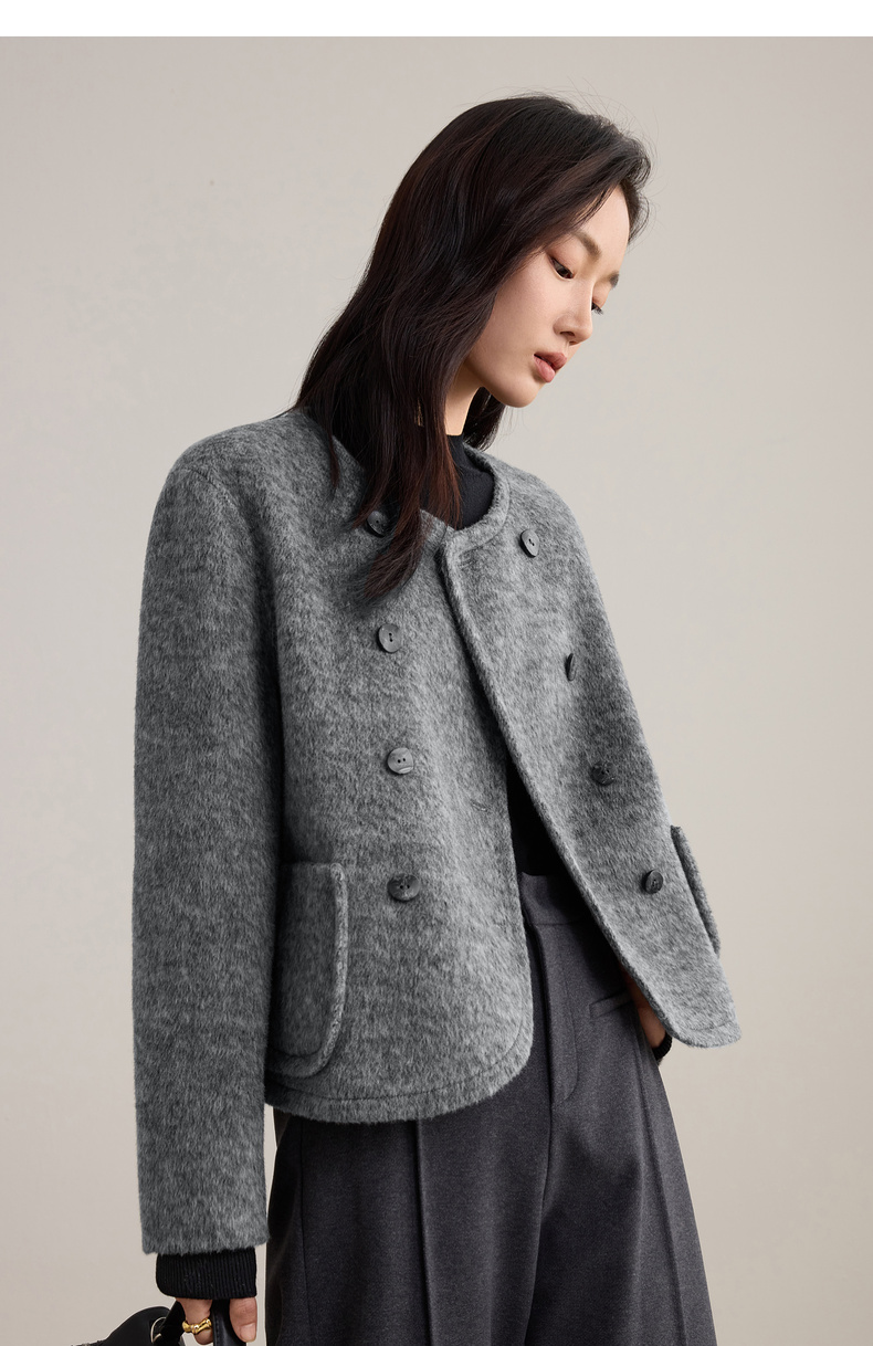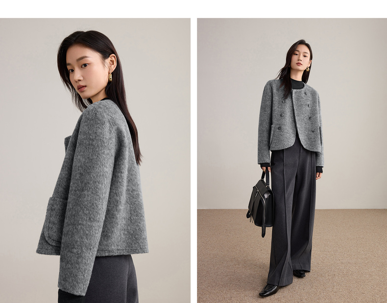 【内购】【英伦系列】-100%绵羊毛下摆圆弧形贴袋70支880克双面呢外套-W54OG2668