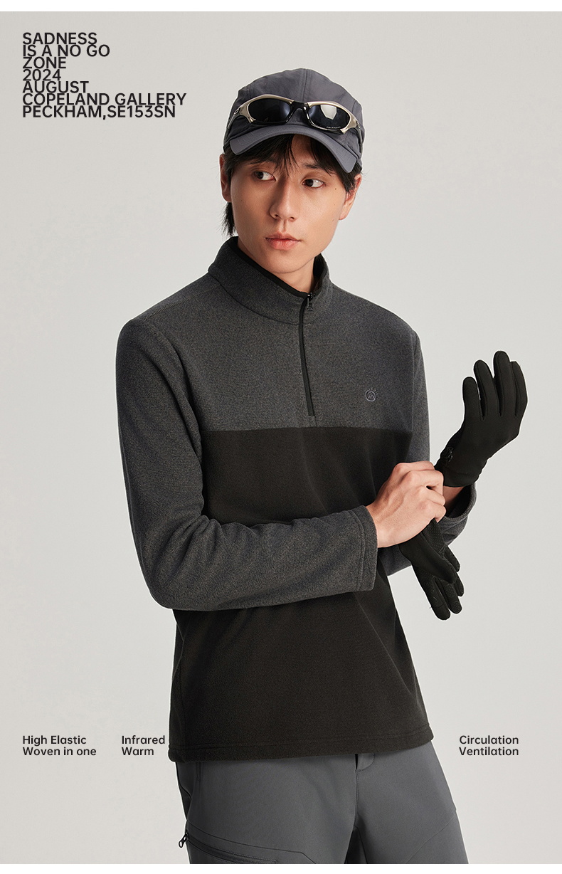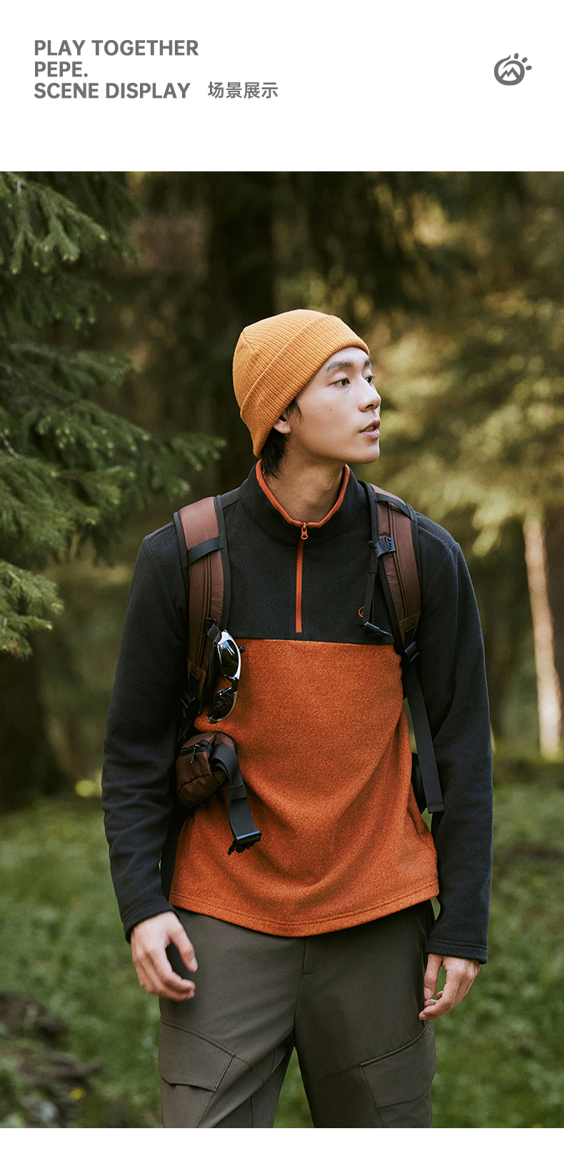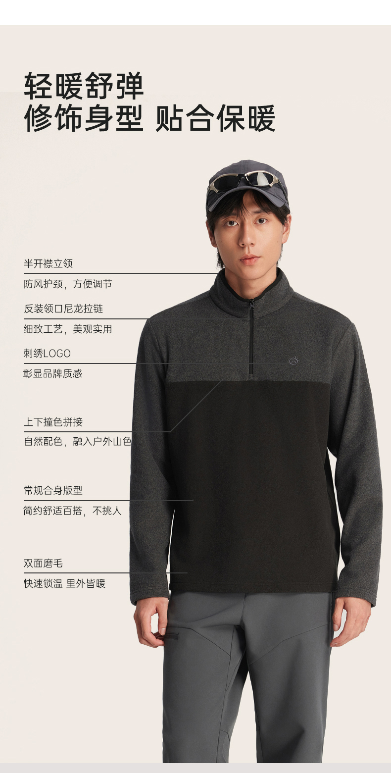 探拓户外保暖抓绒衣男女款冲锋衣内胆打底衫登山徒步立领长袖T恤