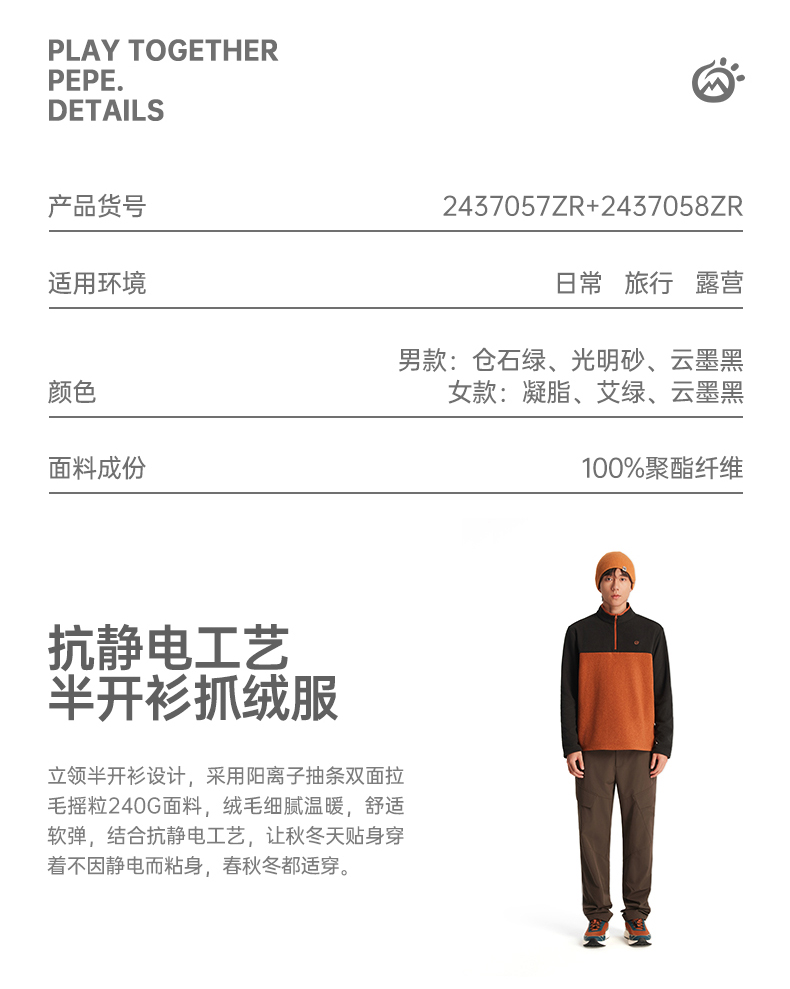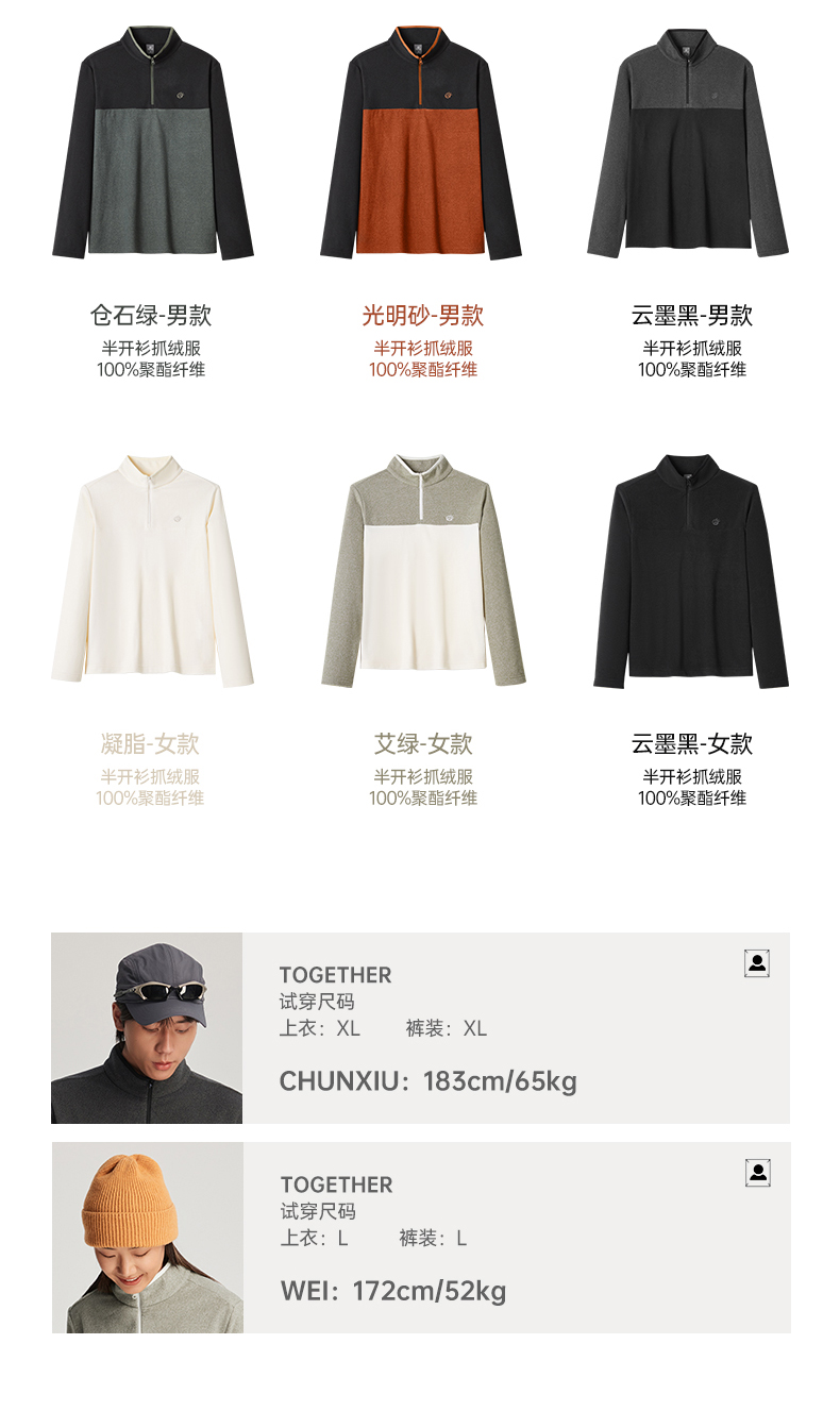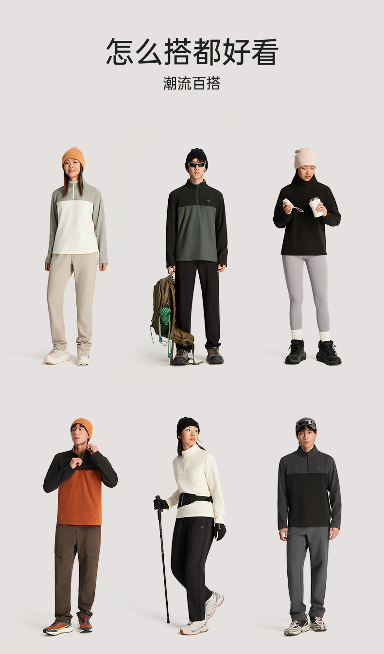 探拓户外保暖抓绒衣男女款冲锋衣内胆打底衫登山徒步立领长袖T恤