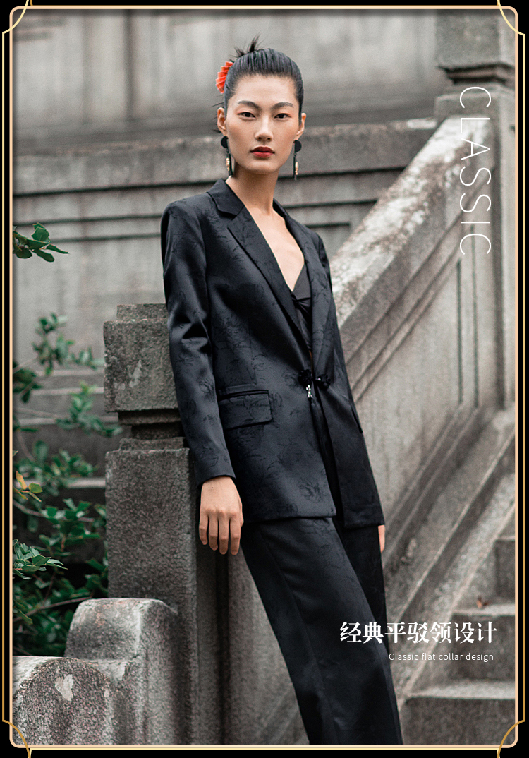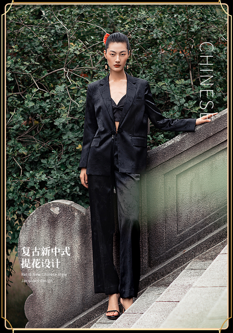 IWY/国风职业时尚西装套装复古新中式提花设计一粒盘扣213225C1+P2