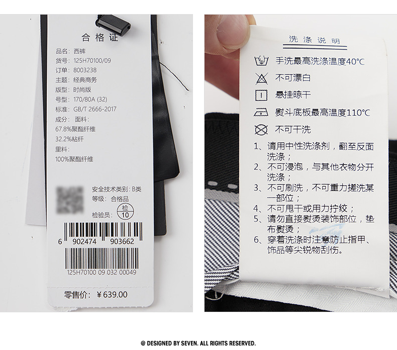 柒牌男装西裤2024春季新款犀牛褶免烫中年男士商务休闲西装长裤子126H72940