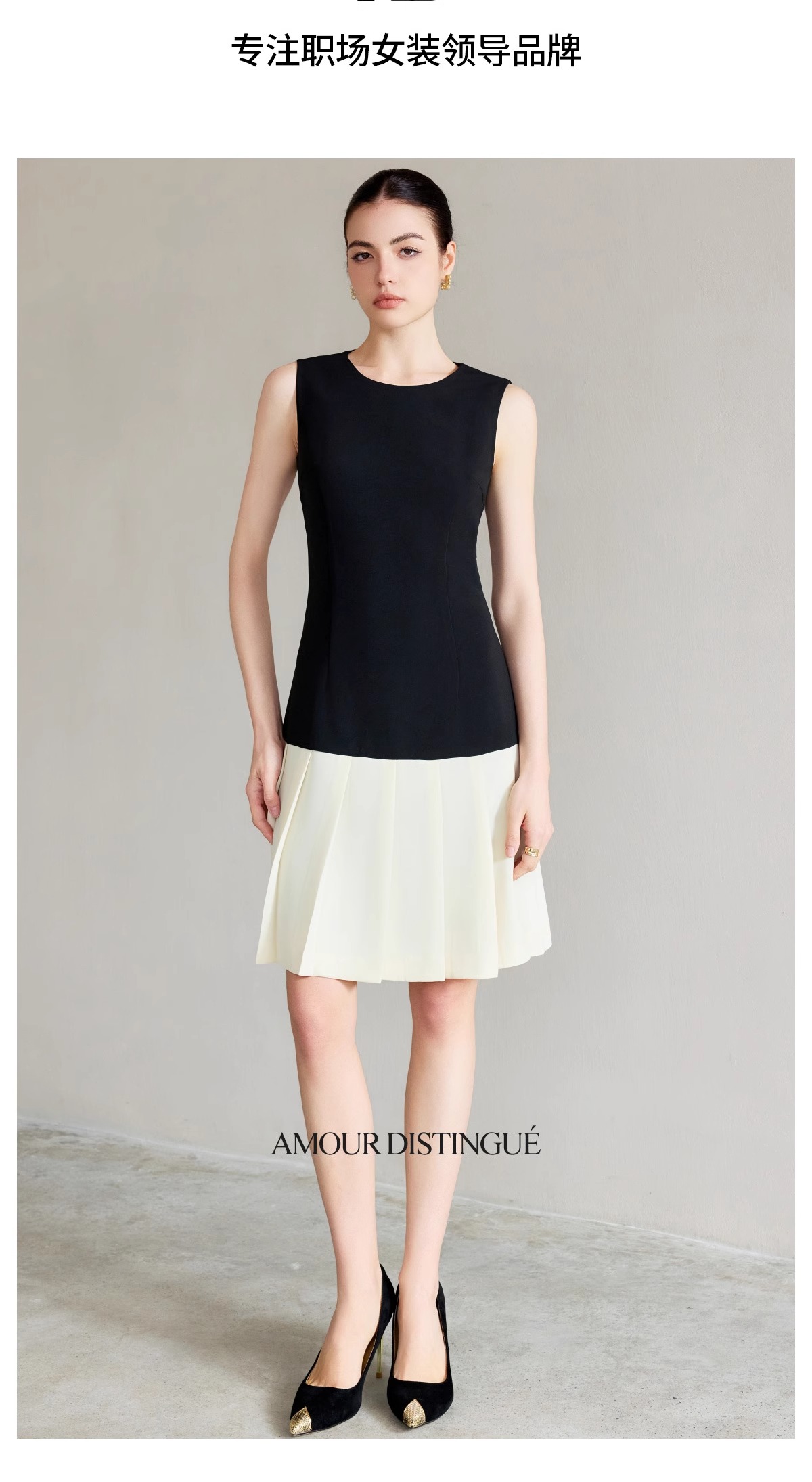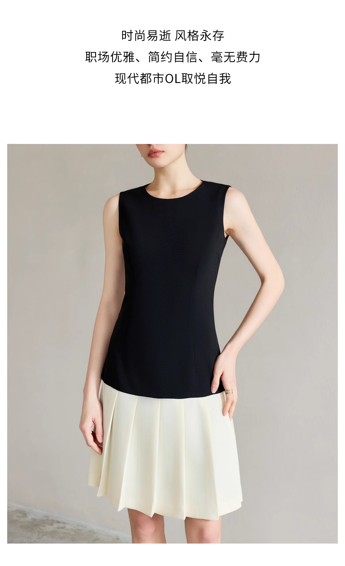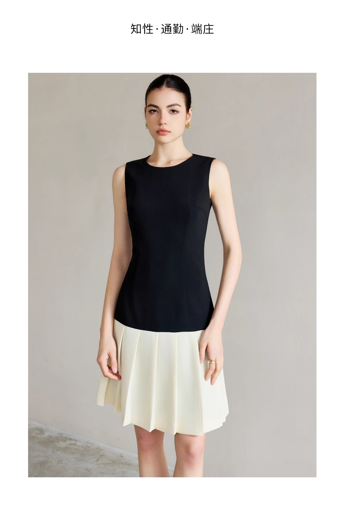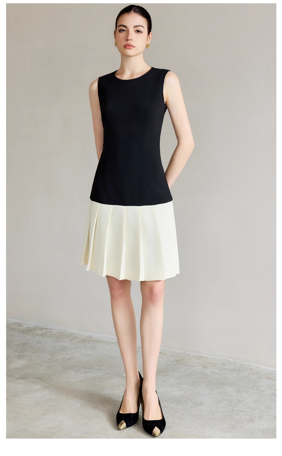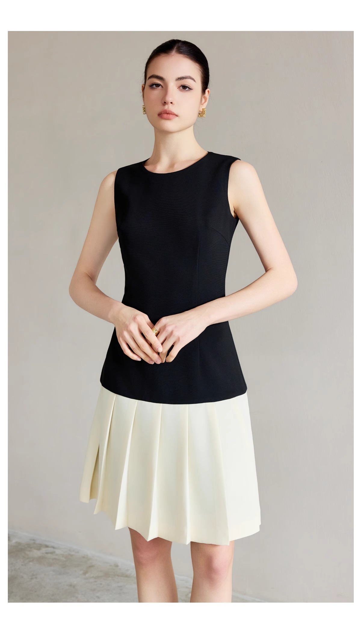 IWY/ 夏季无袖连衣裙女新款黑白撞色百褶裙高级内搭背心裙Q1296