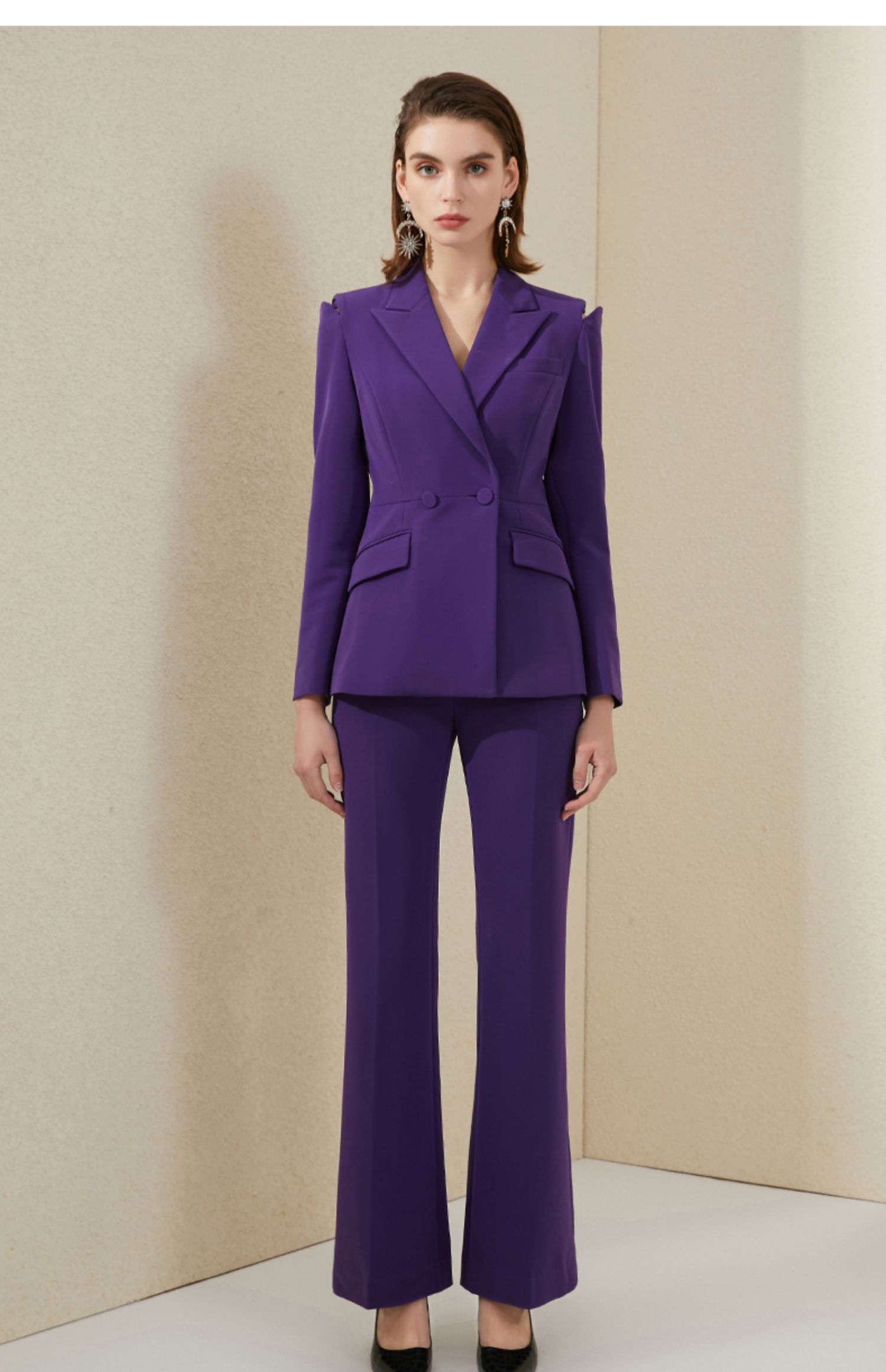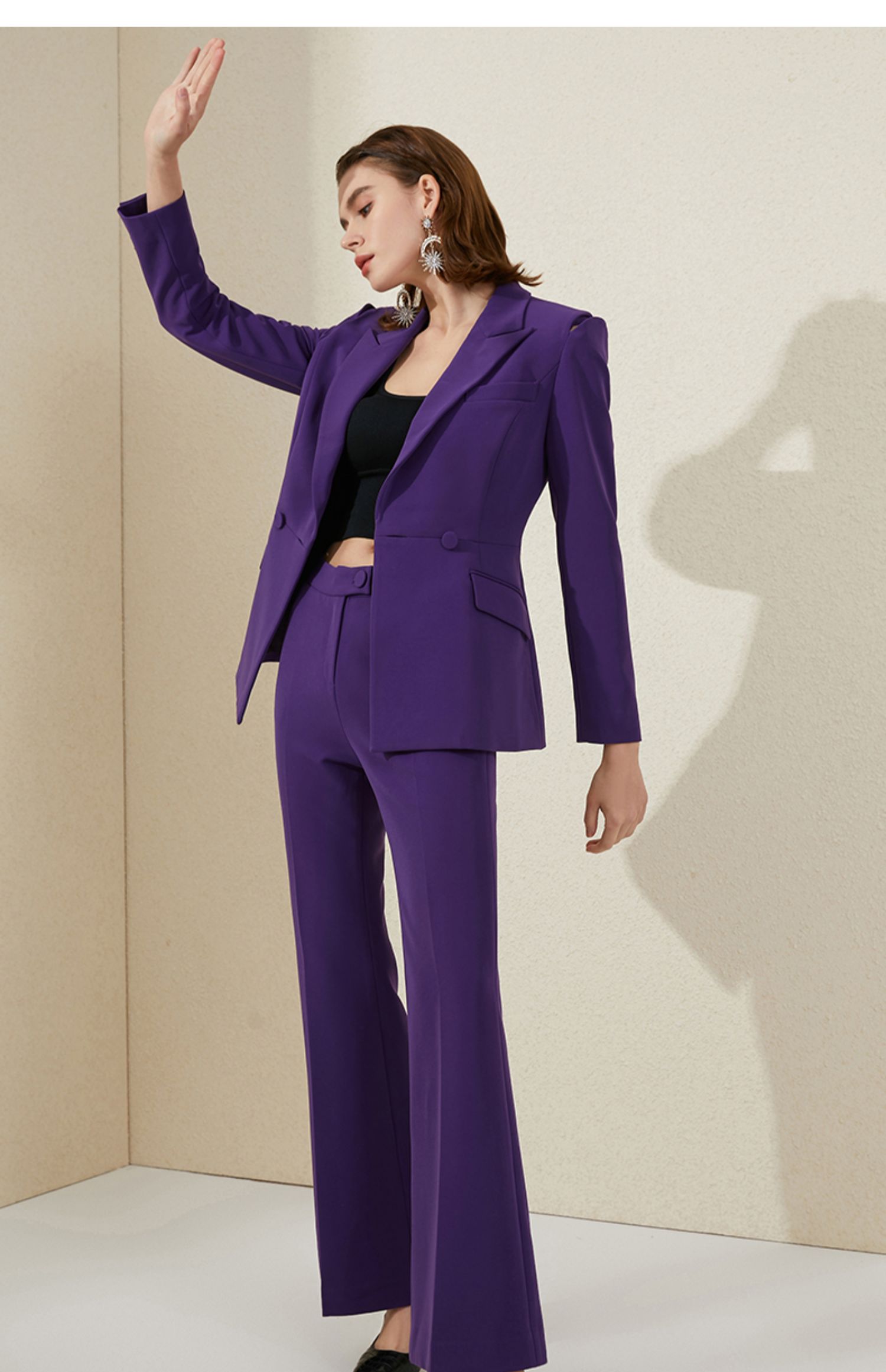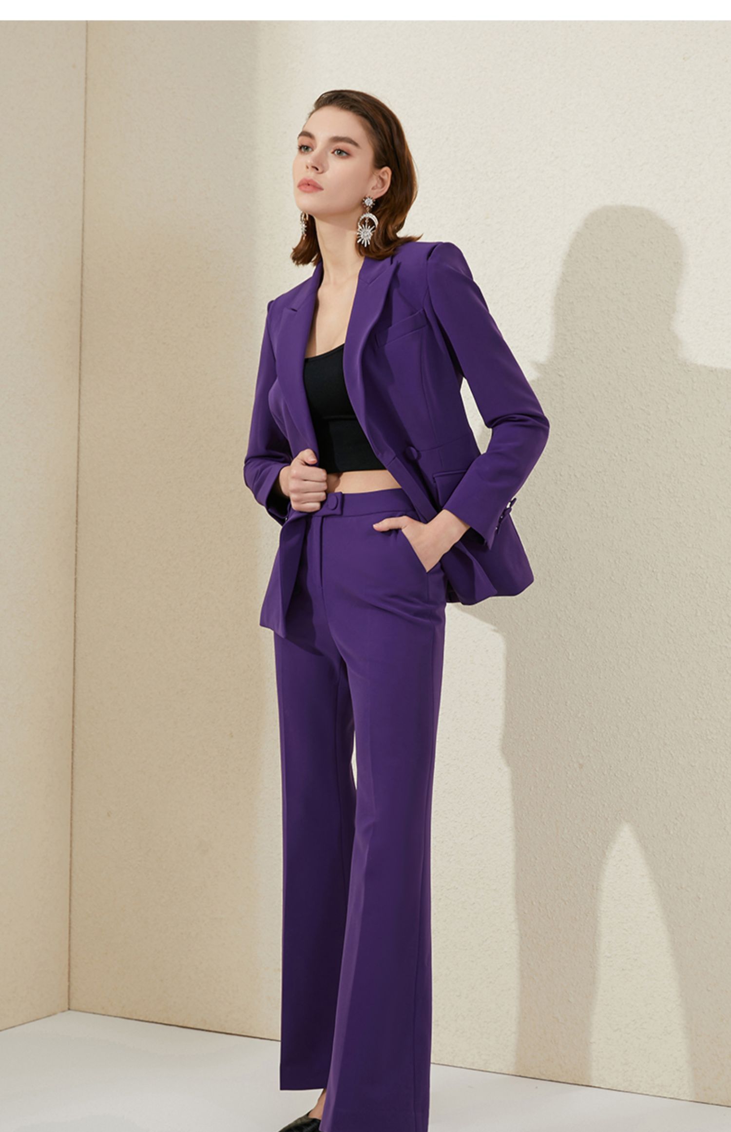 IWY/复古紫色西装套裤女秋新款时尚职业装套装白领上班通勤装气质西服 213201C1+P3