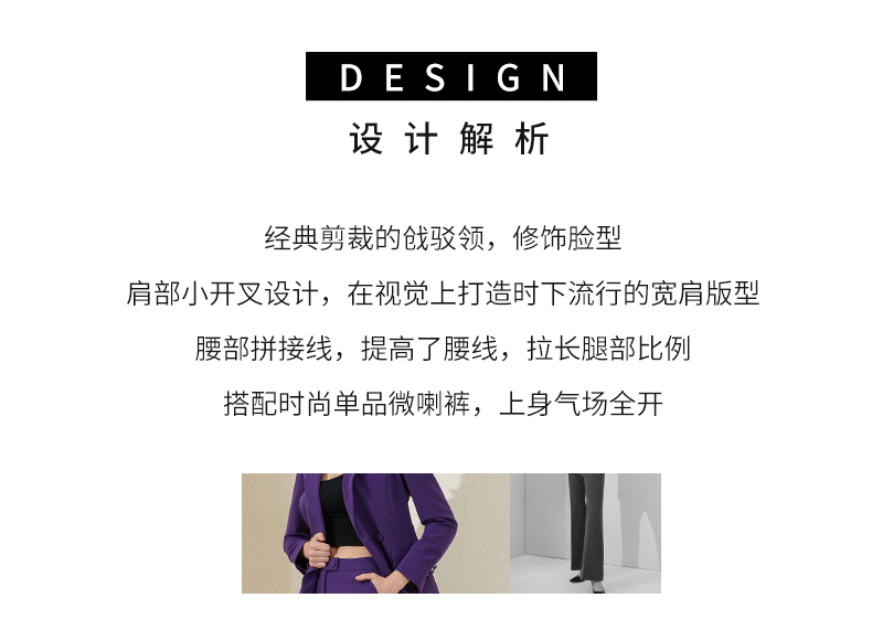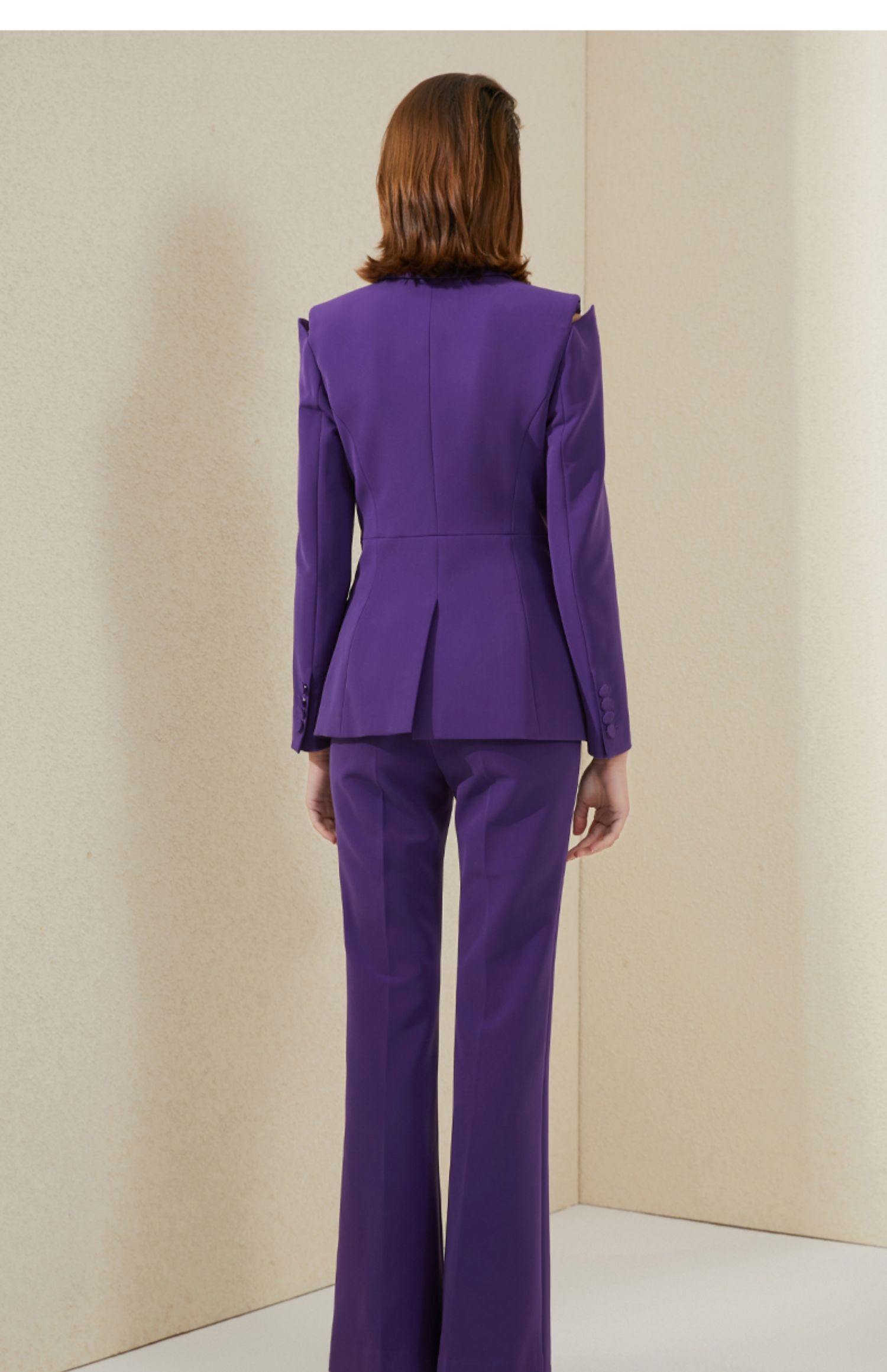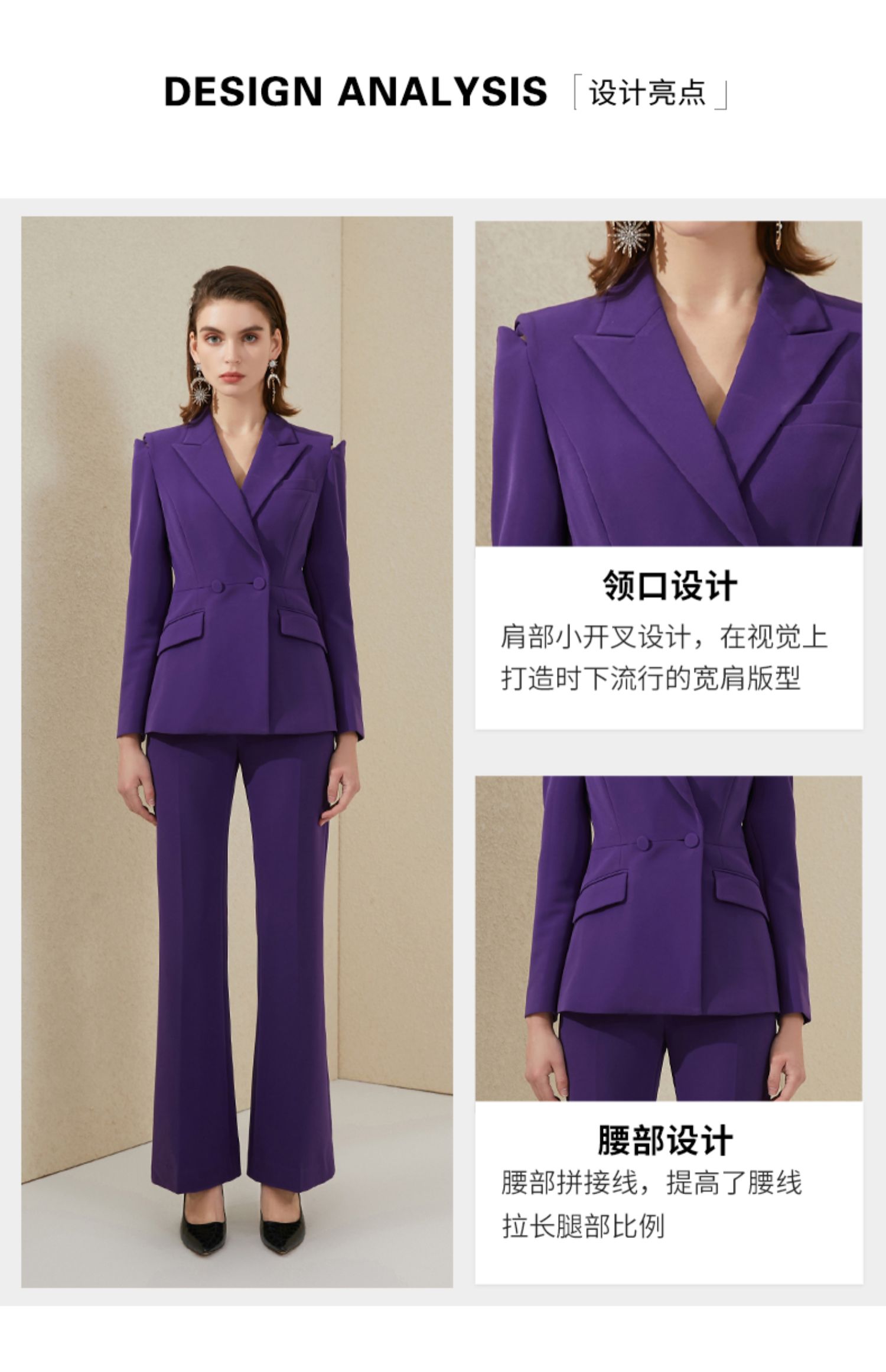IWY/复古紫色西装套裤女秋新款时尚职业装套装白领上班通勤装气质西服 213201C1+P3