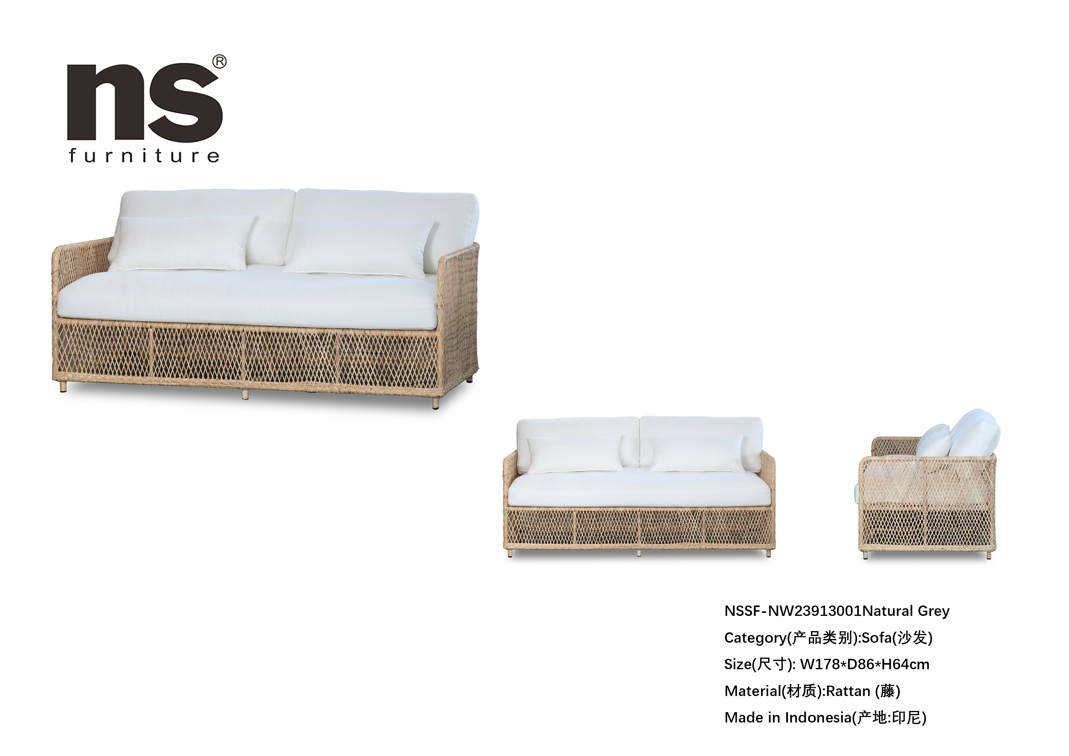 NS家居 nsfurniture进口藤制沙发NSSF-NW23913001*Natural Grey