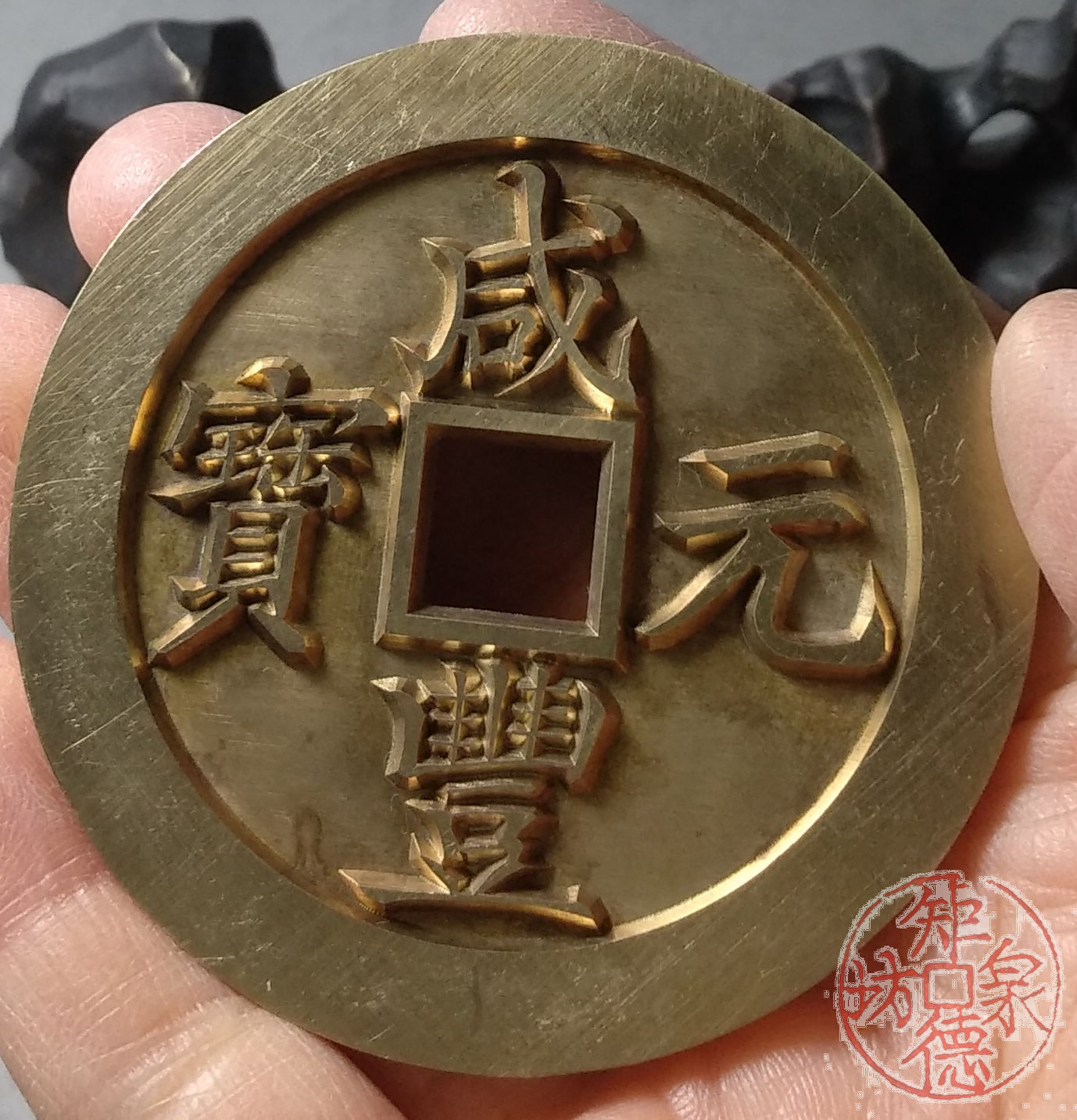 古泉书馆文创 咸丰元宝 宝苏当百 雕母 文房铜镇 DM0008
