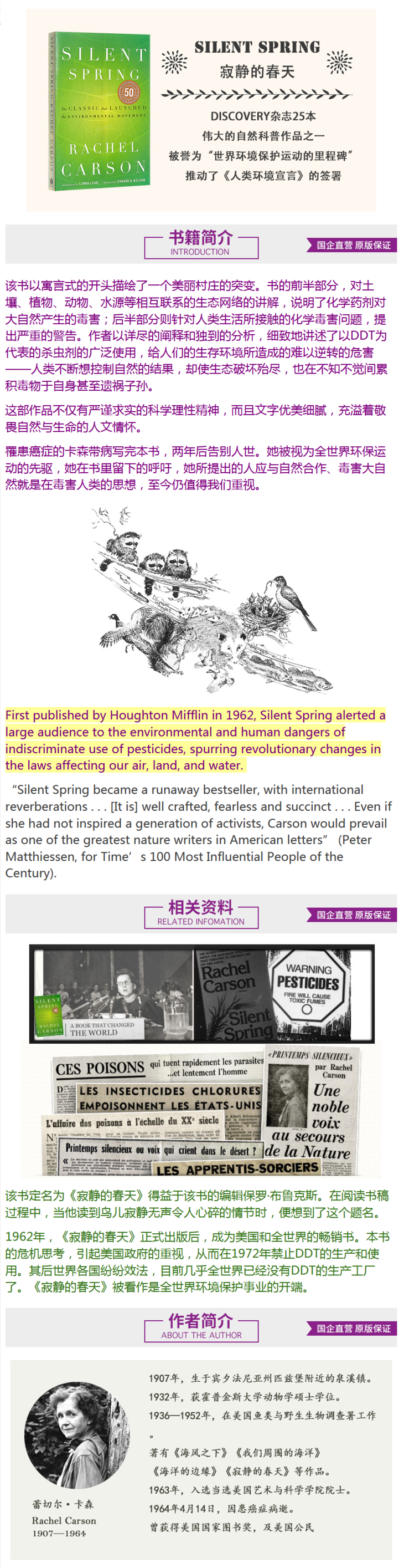 【中商原版】寂静的春天 英文原版 Silent Spring 蕾切尔·卡森 Rachel Carson 环境保护 自然科普读物