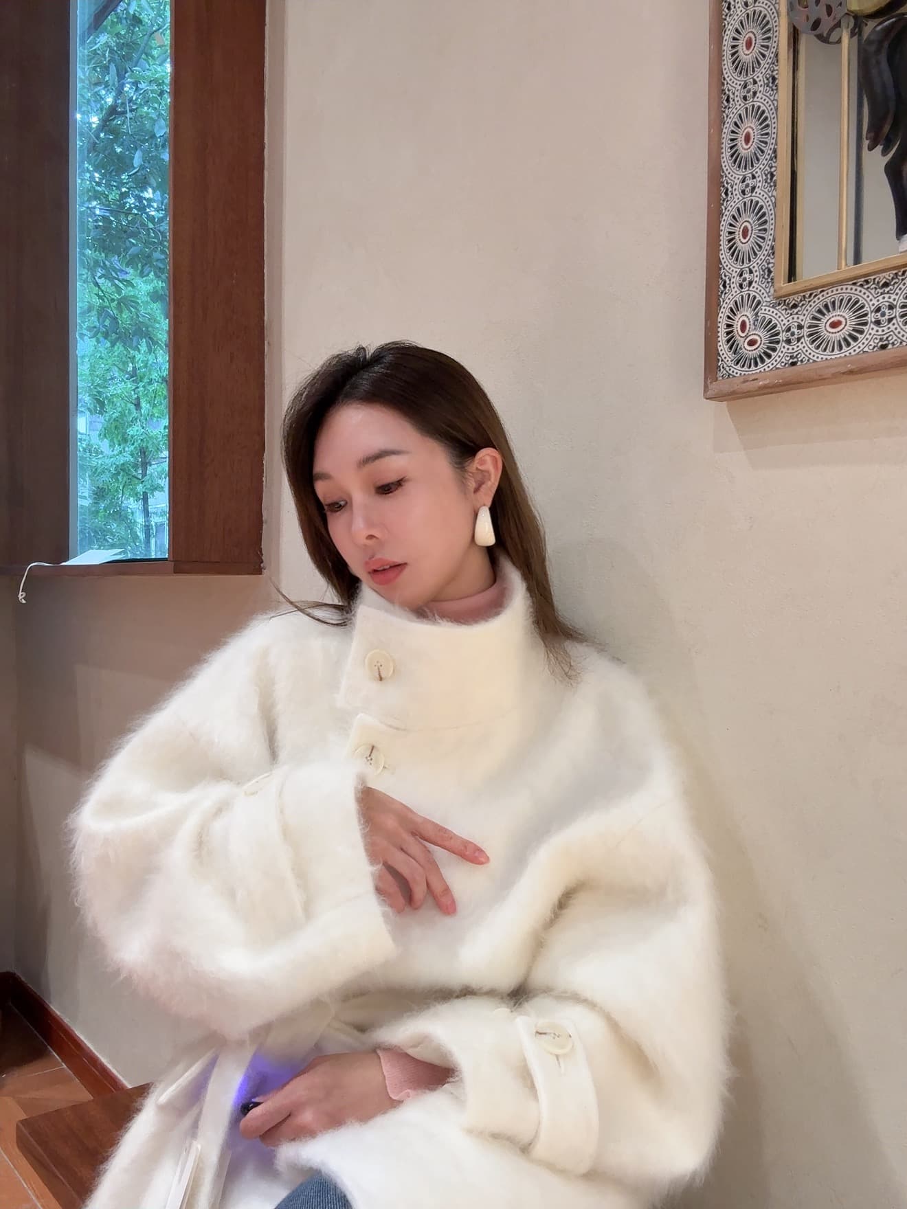 PIANAI冷小姐# 白色立领澳毛+羊绒拉绒中长款外套