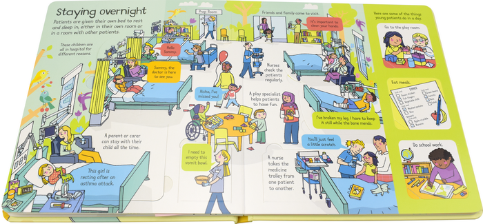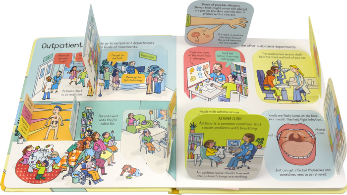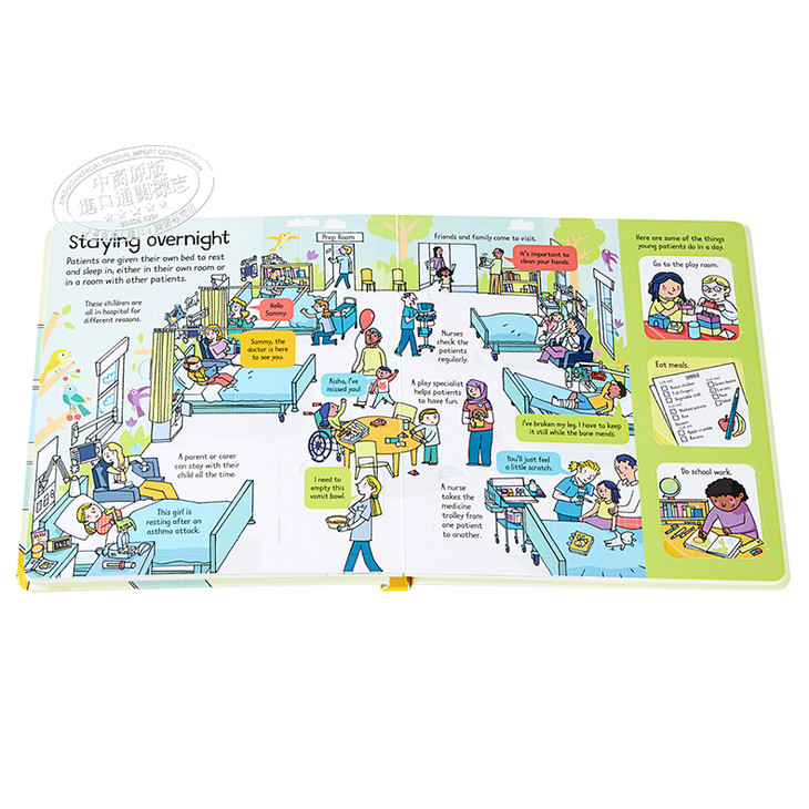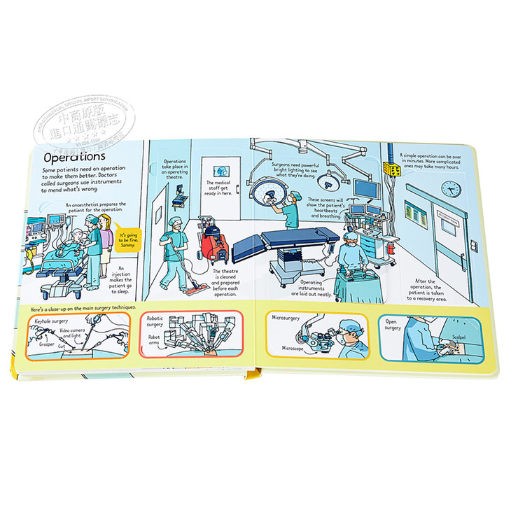 跟随这本书的脚步,小朋友们可以了解到医院工作和运转的真实情况。去看看在医院里发生了什么,并认识一些在那里工作的了不起的人。孩子们可以探索急诊和产科病房,学习x光射线和扫描是如何工作的,还可以看到手术室里的情况。有超过50个翻翻页可以翻阅,还有其他链接网站,帮助孩子们了解更多的医学知识。