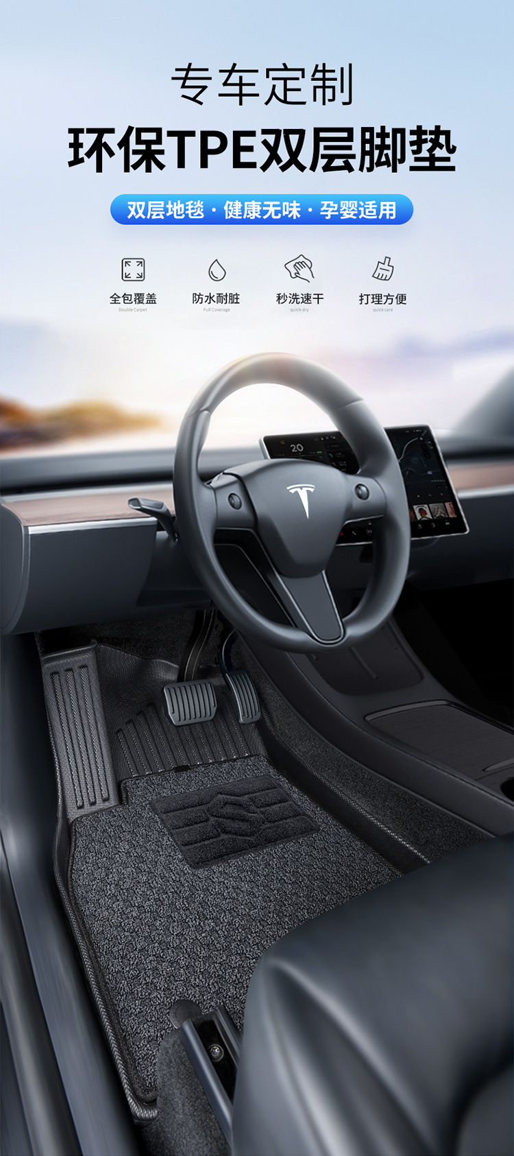 【渠道专拍】御微系列原车色定制软包汽车脚垫专用于宝马X5奔驰e300奥迪a6l特斯拉modelY