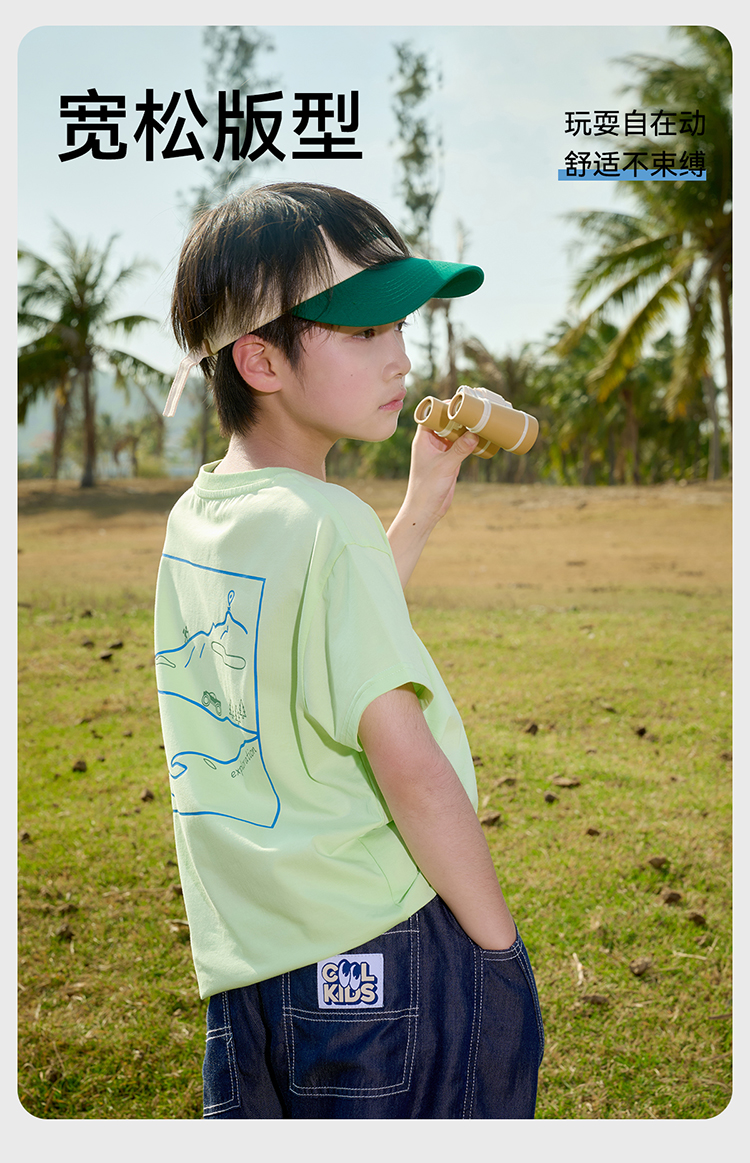 【10A抗菌】棉花堂夏款山系多点童趣印花丝滑冰瓷棉童装T恤 --FD61125
