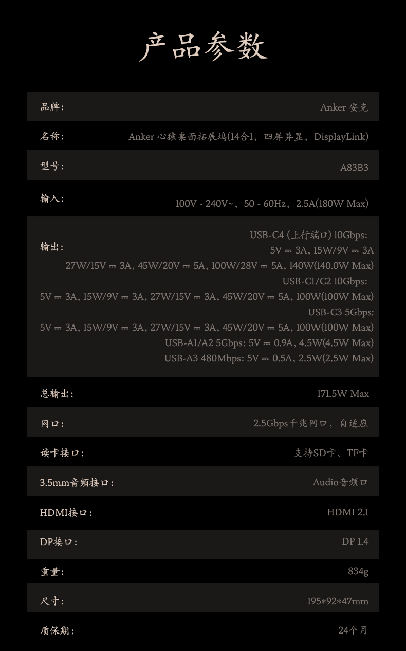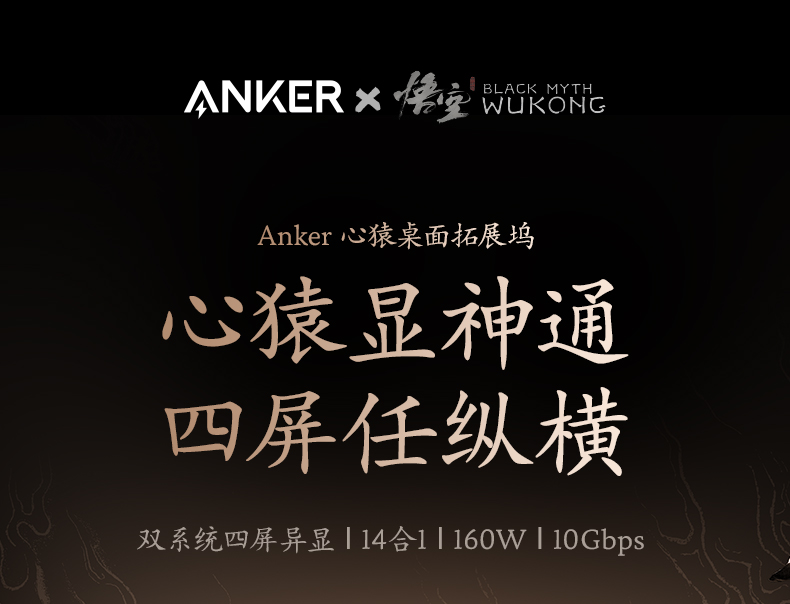 【新品】Anker安克 黑神话悟空联名系列 心猿桌面扩展坞 A83B3