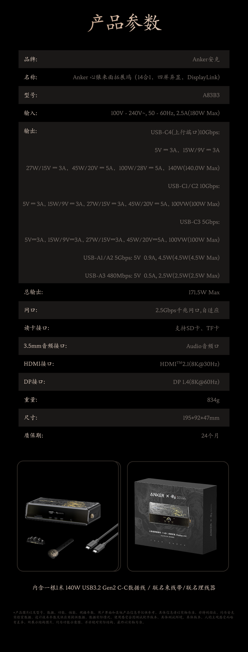 Anker安克 黑神话悟空联名系列 心猿桌面扩展坞 A83B3