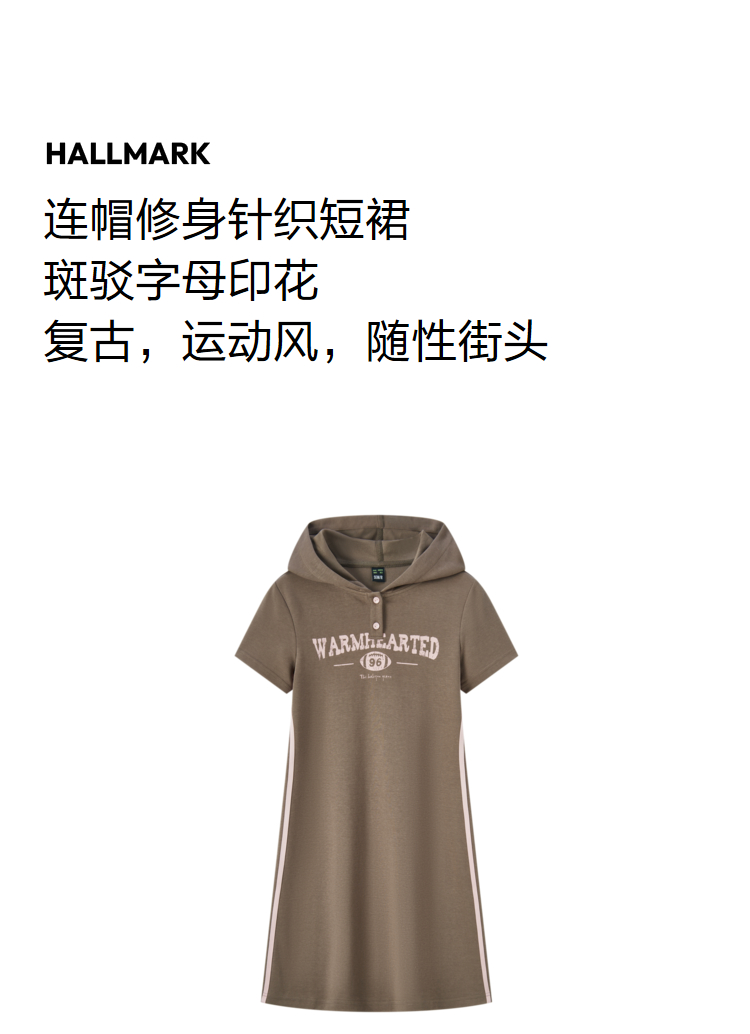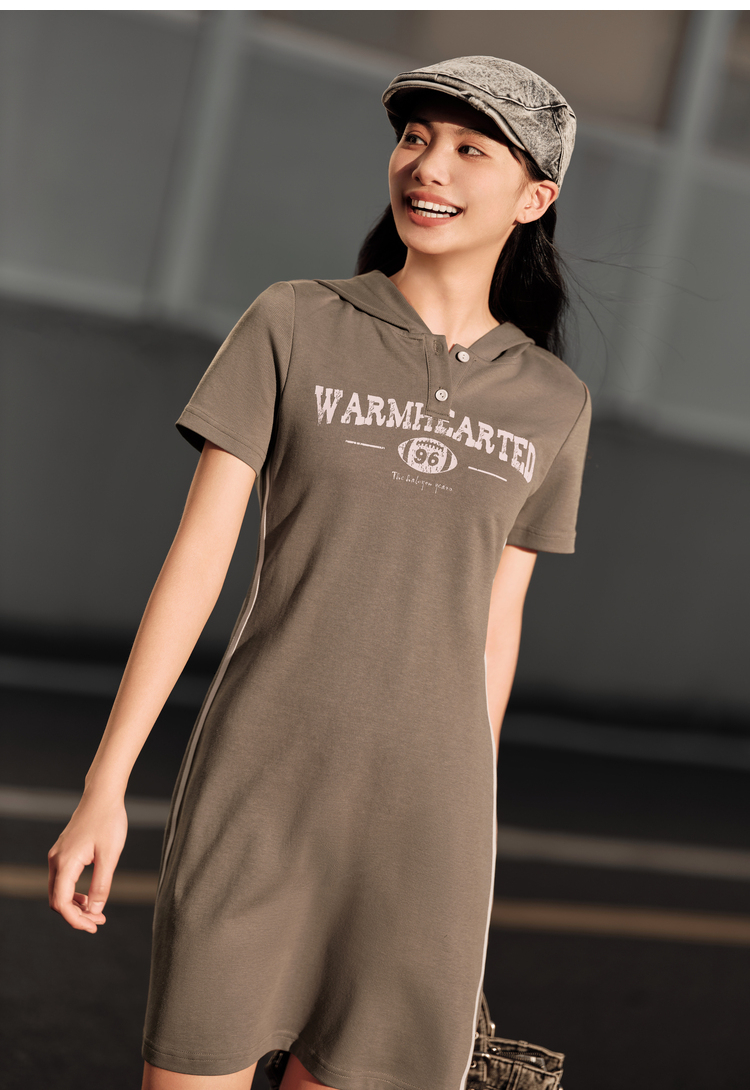 森马连衣裙女字母印花复古潮流休闲新款夏修身连帽短裙运动风