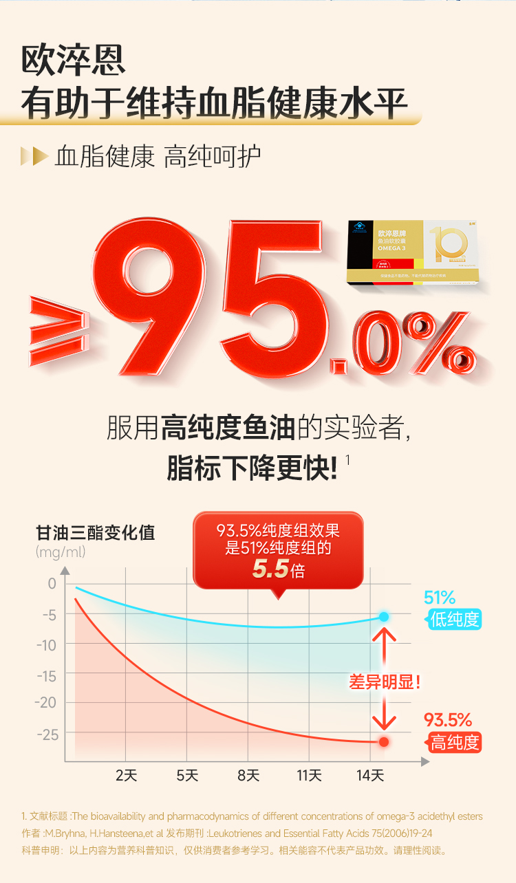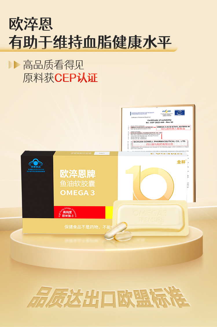 【达人专享】欧淬恩牌鱼油软胶囊-95%纯度-48粒/盒