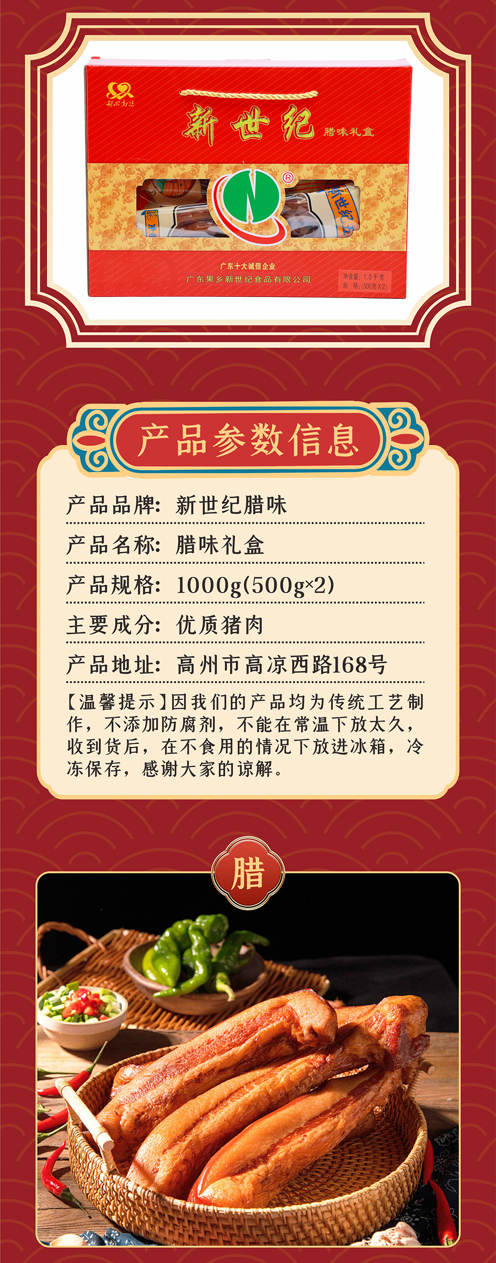 新世纪精装礼盒腊肠1000g