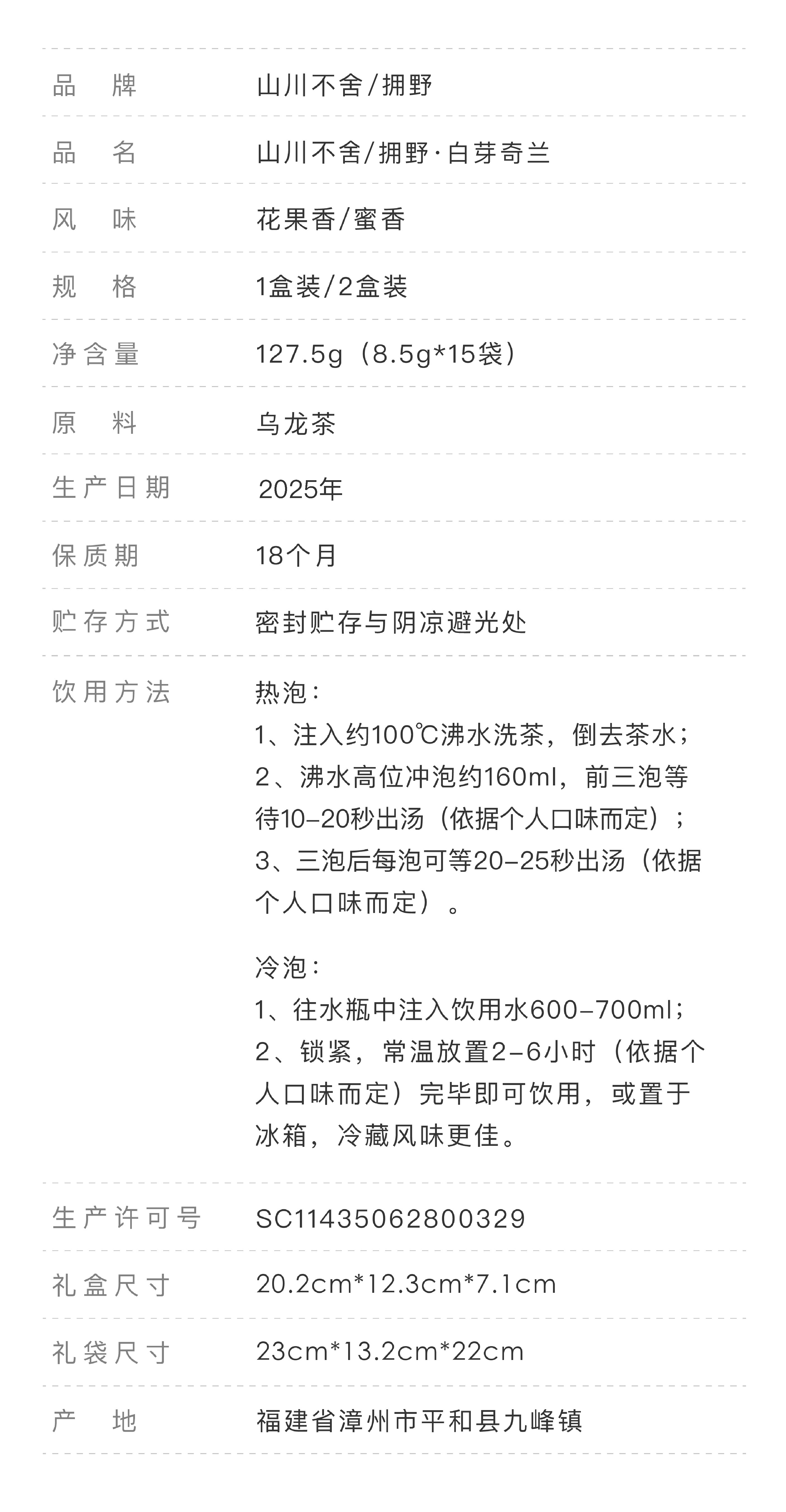 【2025年新茶】白芽奇兰茶 花果香/蜜香 127.5g/盒(8.5gx15袋)