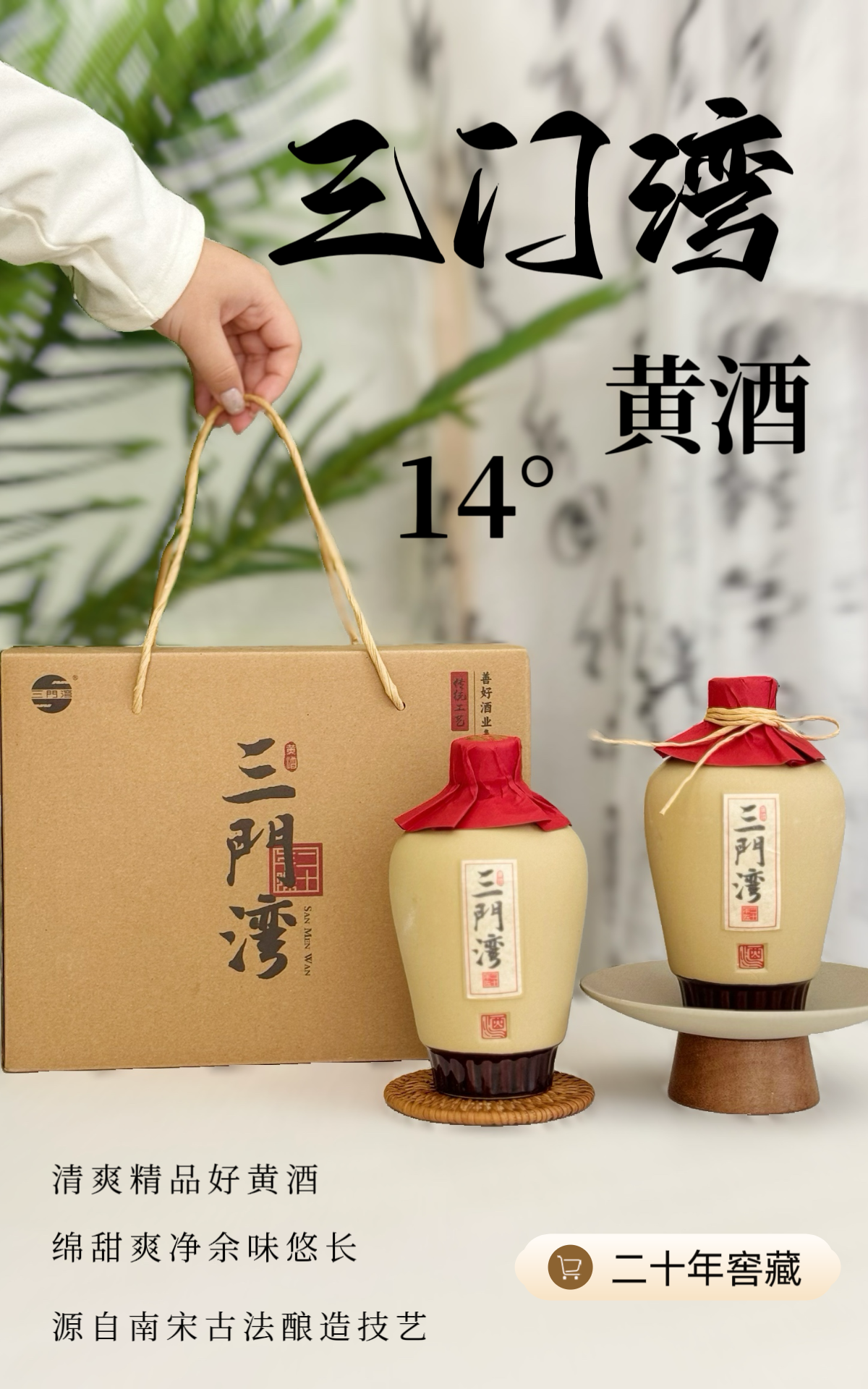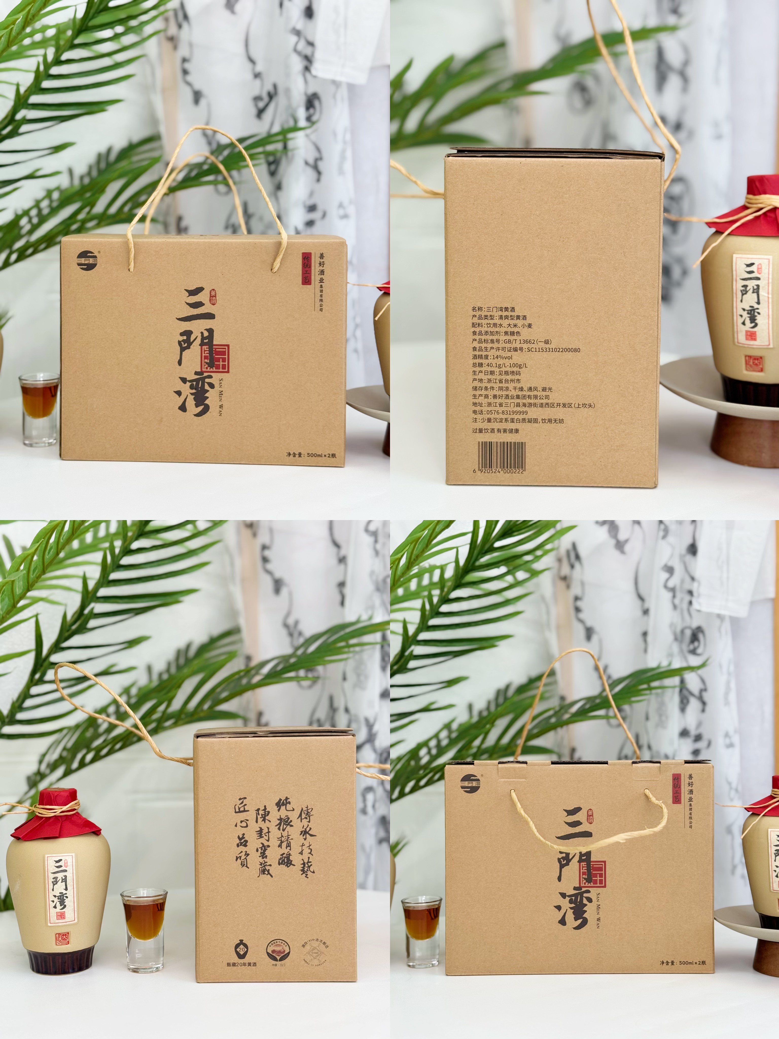 二十年窖藏手工酿造 ‼三门湾二十年窖藏清爽型黄酒14度 500ml×2瓶礼盒装