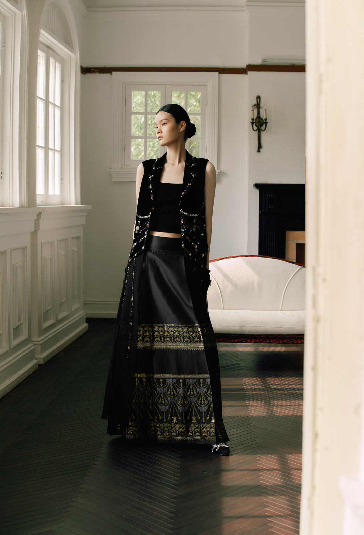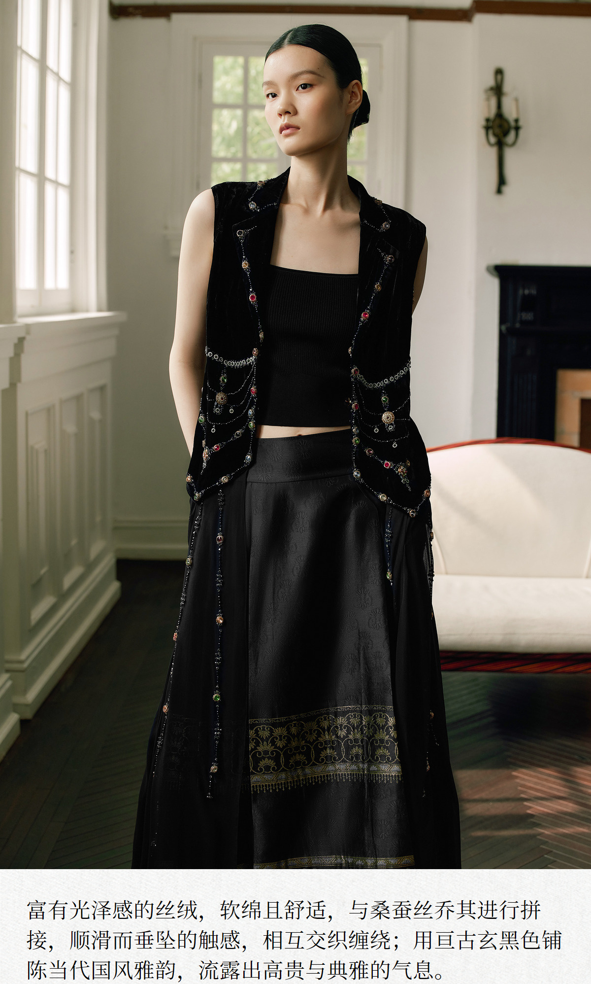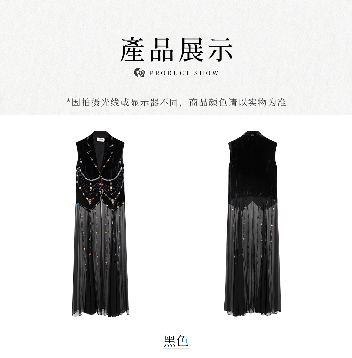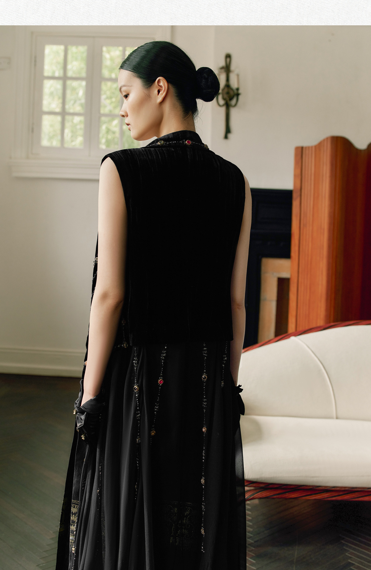 【林栖设计小店】【定制90天】时装周同款高定马甲真丝丝绒手工钉珠2024春夏新品上衣女H1941187