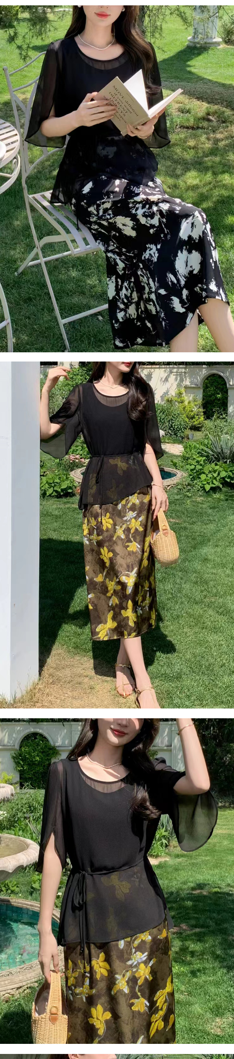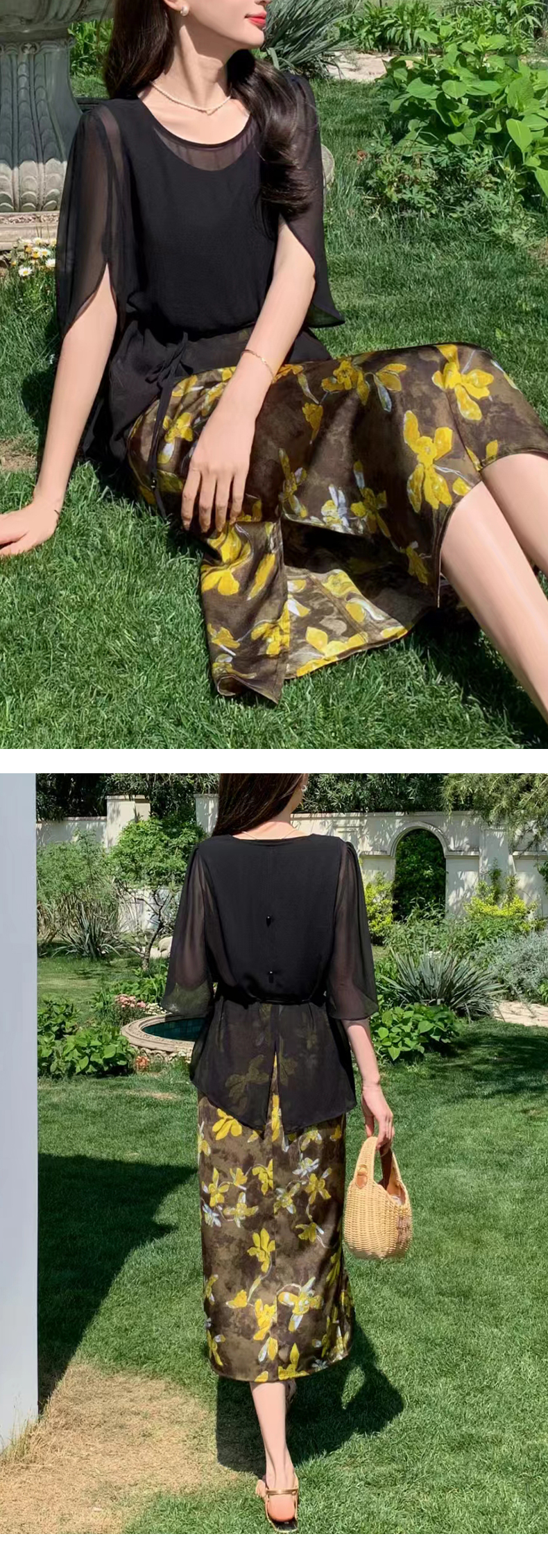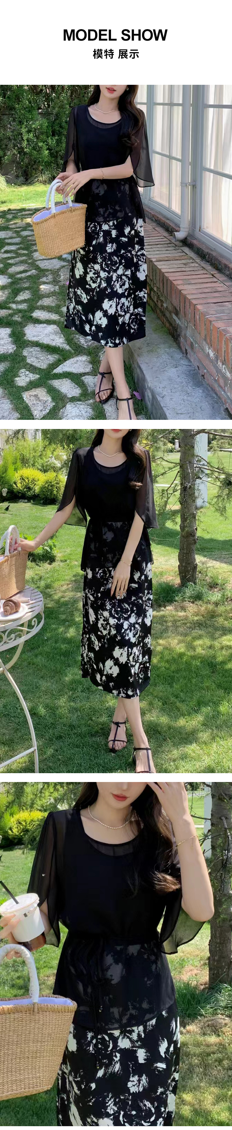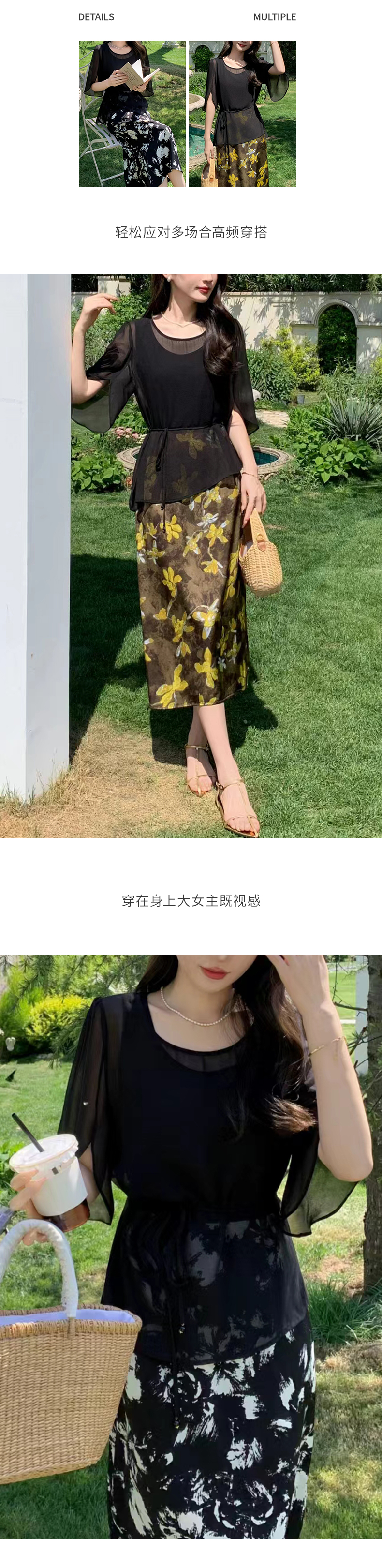 【特价不退换】阿菁娜法式轻熟风优雅裁剪印花套装连衣裙F30X230005