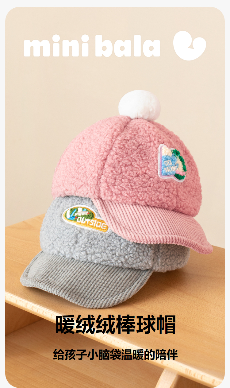迷你巴拉男童女童鸭舌帽秋冬宝宝毛绒拼接时尚保暖儿童帽子
