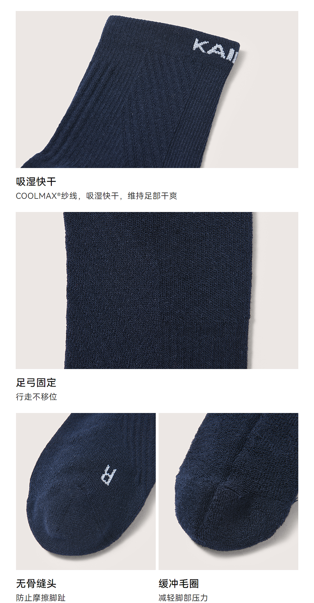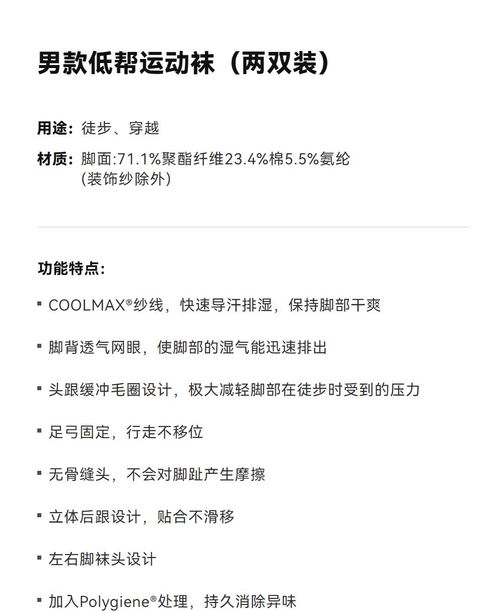 KAILAS凯乐石 户外运动 男款超低帮运动袜(两双装) KH2402101