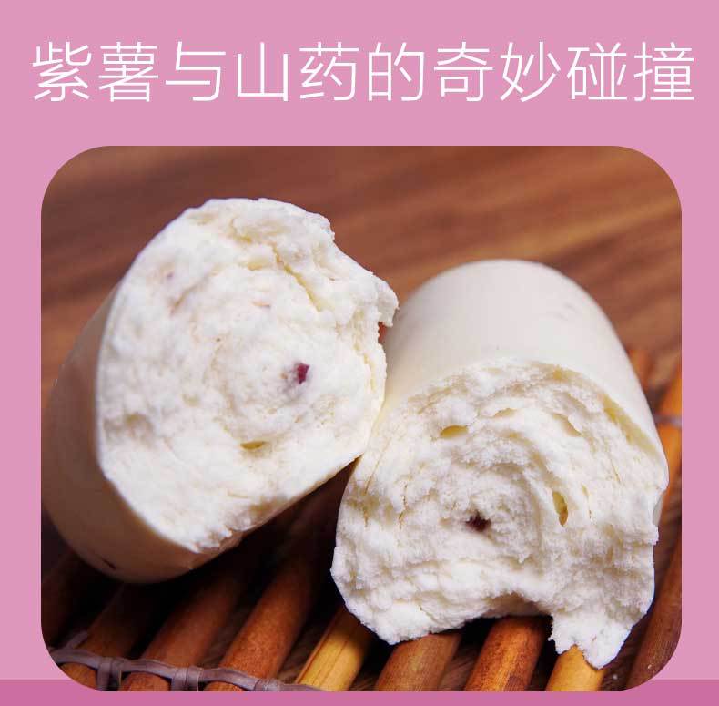 【健康粗粮❗️山药紫薯棒馒头】配料表超干净,只有山药、小麦粉、紫薯、酵母、饮用水,没有其它!早餐儿童面点紫薯棒主食速食半成品