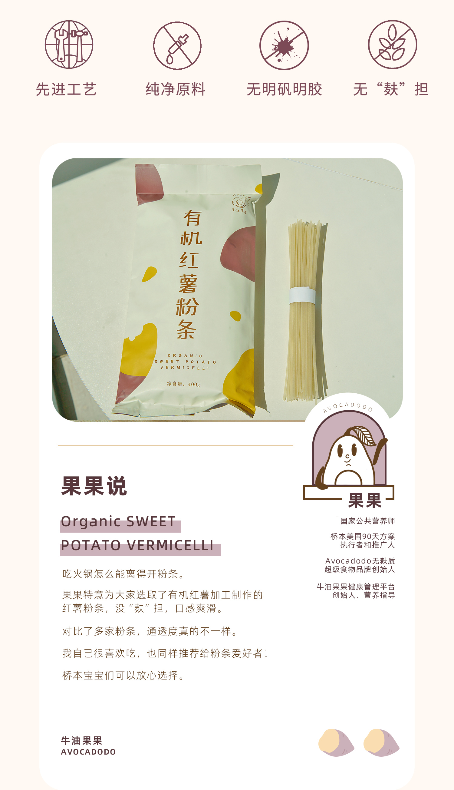Avocadodo有机红薯粉条不加小麦火锅酸辣凉菜无明矾胶牛油果果
