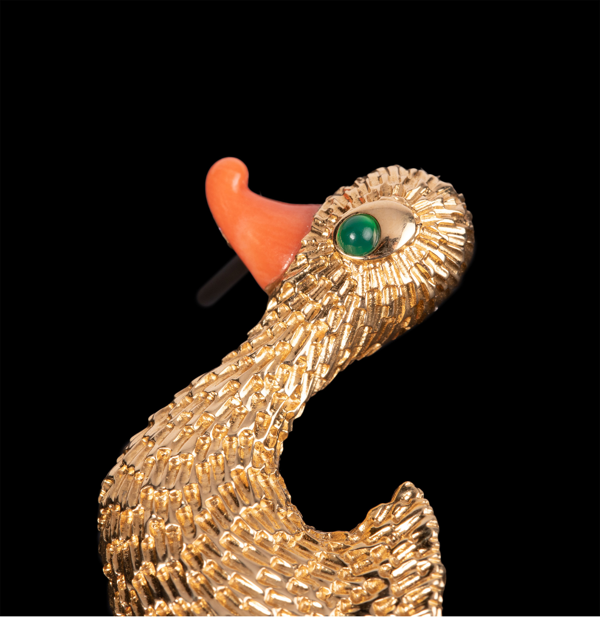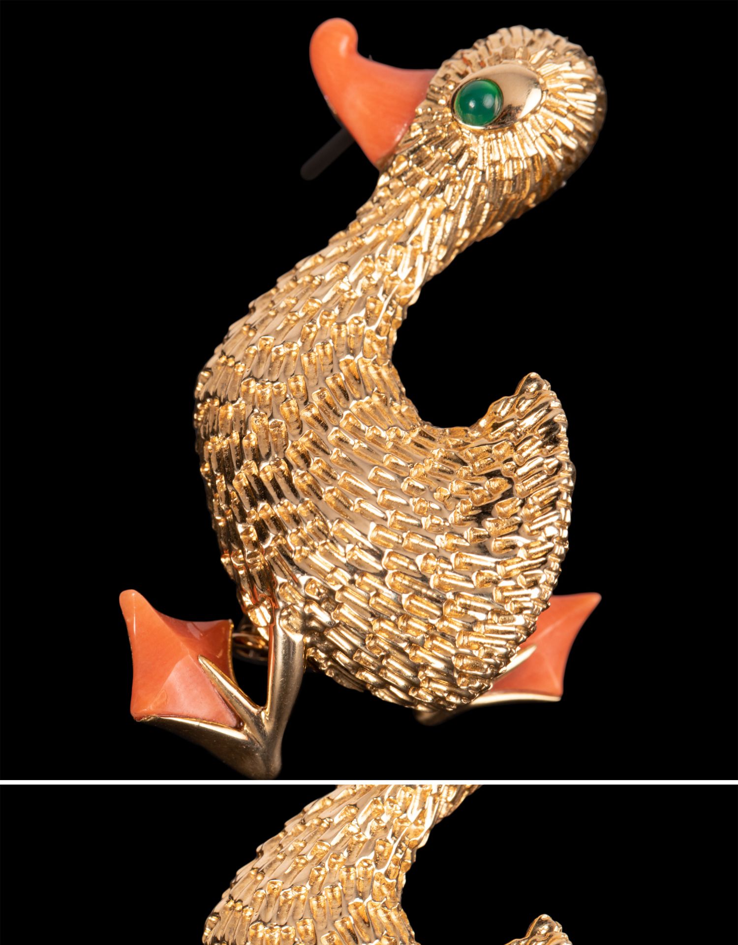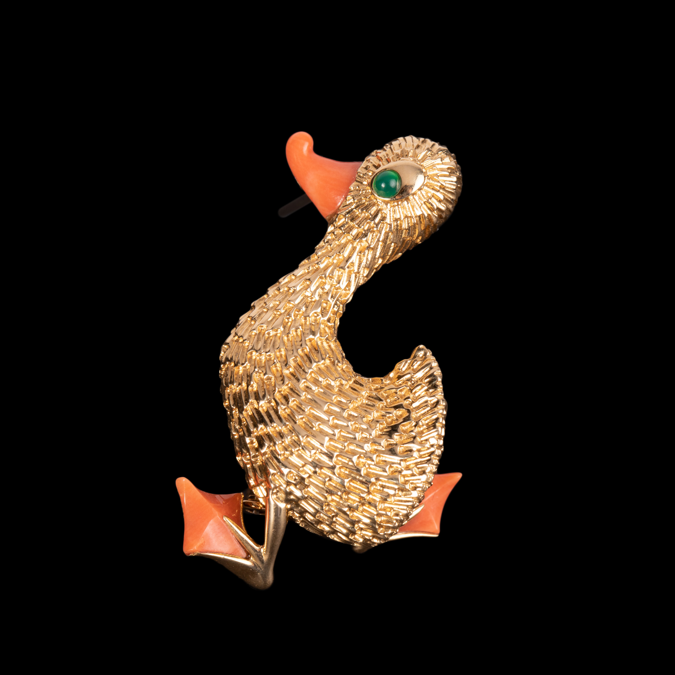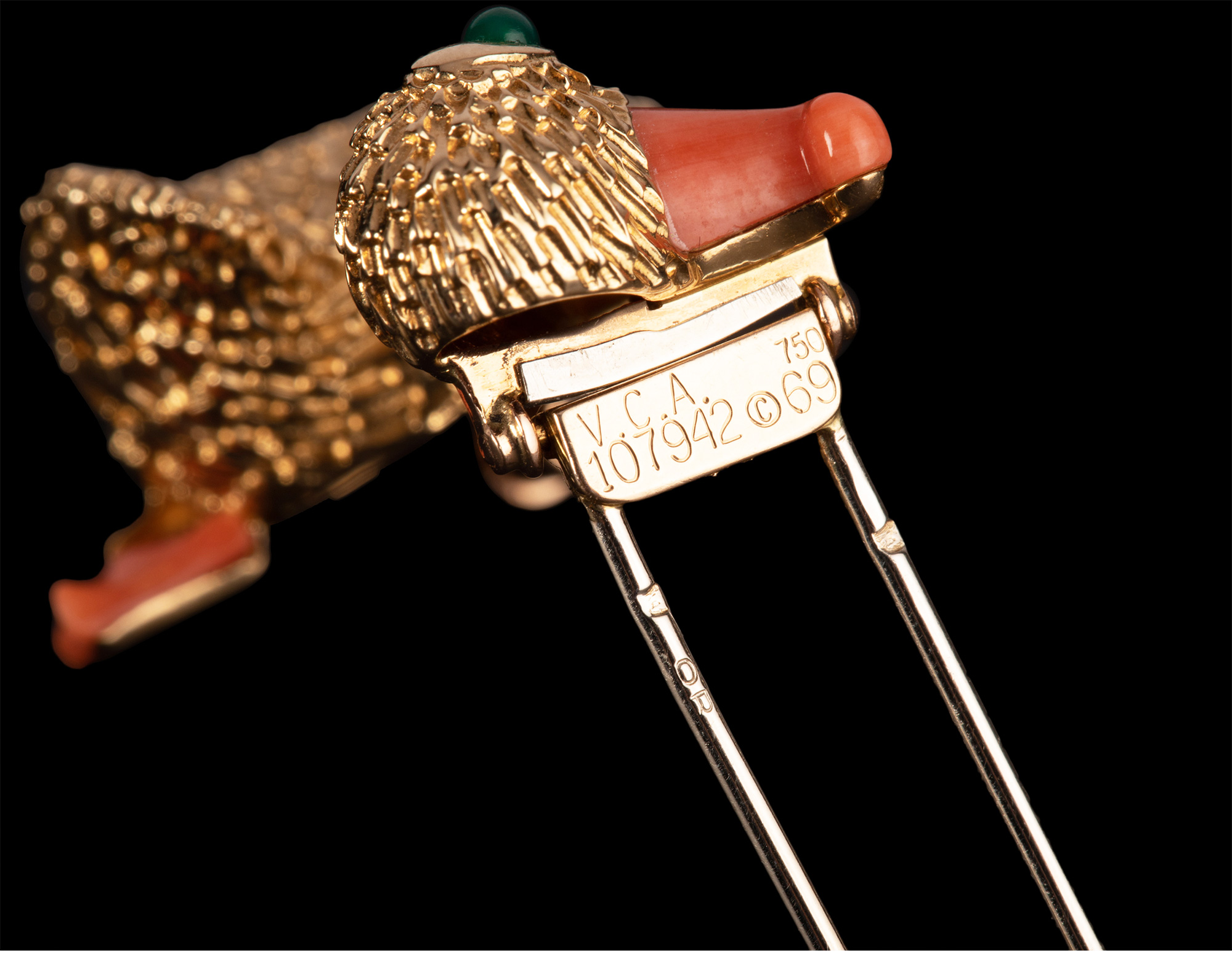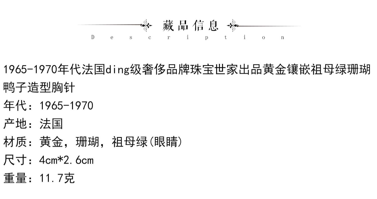 独角鹿西洋古董法国珠宝世家品牌黄金镶祖母绿珊瑚鸭子造型胸针