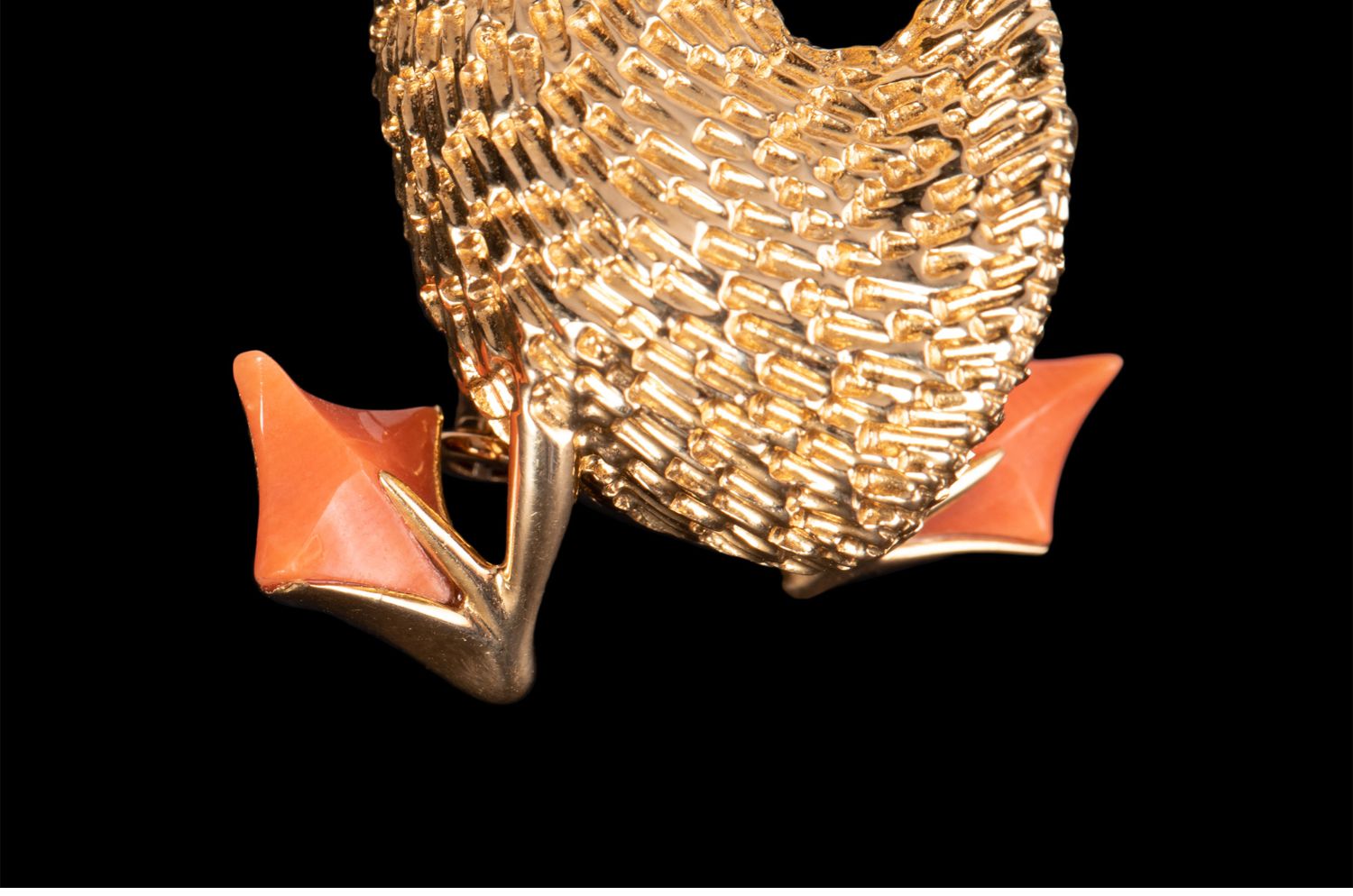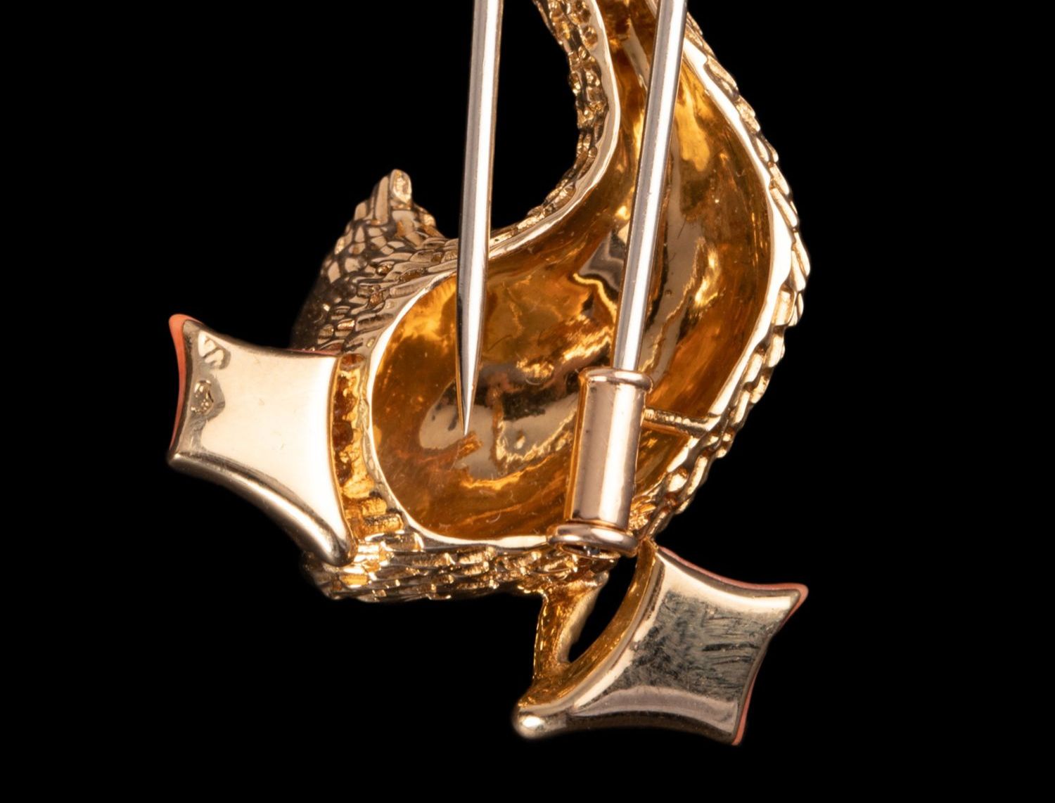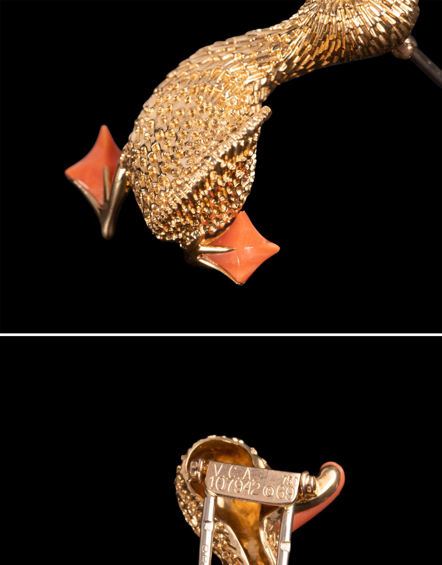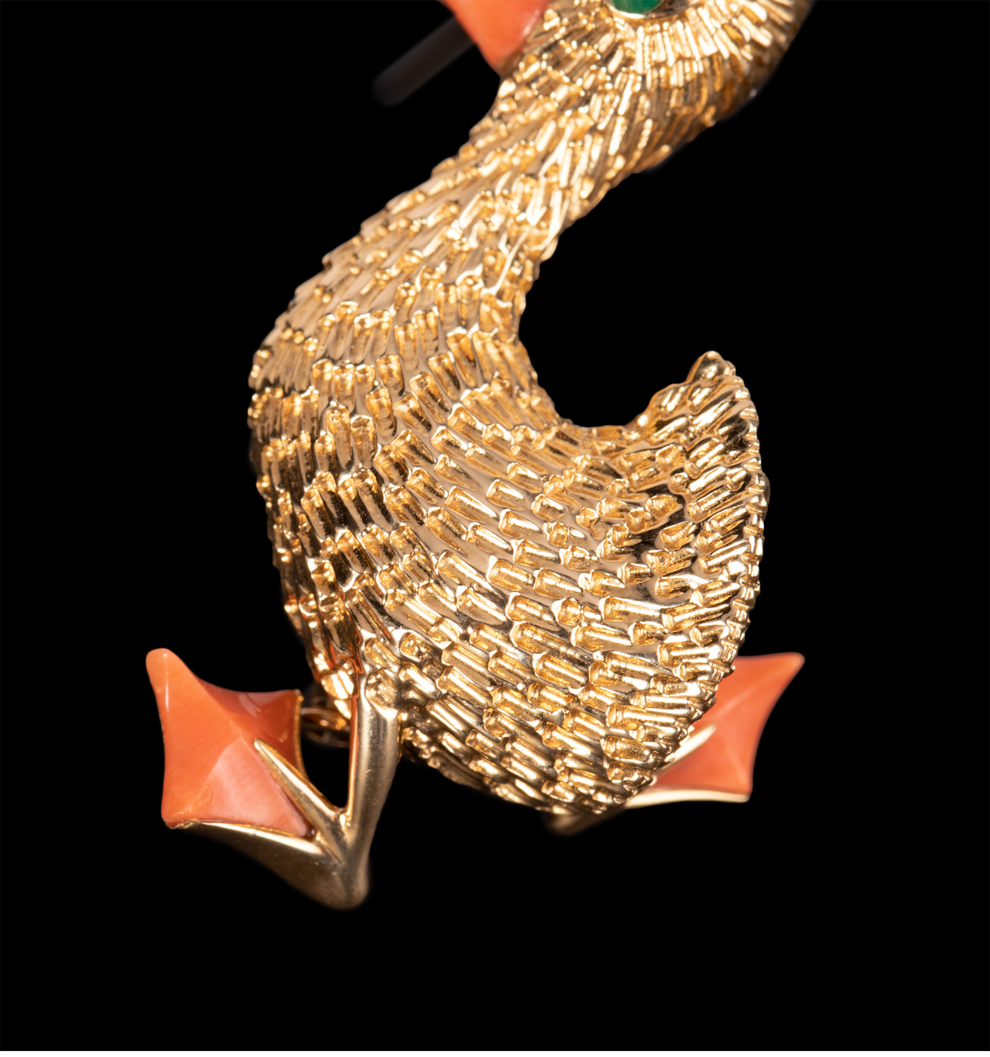 独角鹿西洋古董法国珠宝世家品牌黄金镶祖母绿珊瑚鸭子造型胸针