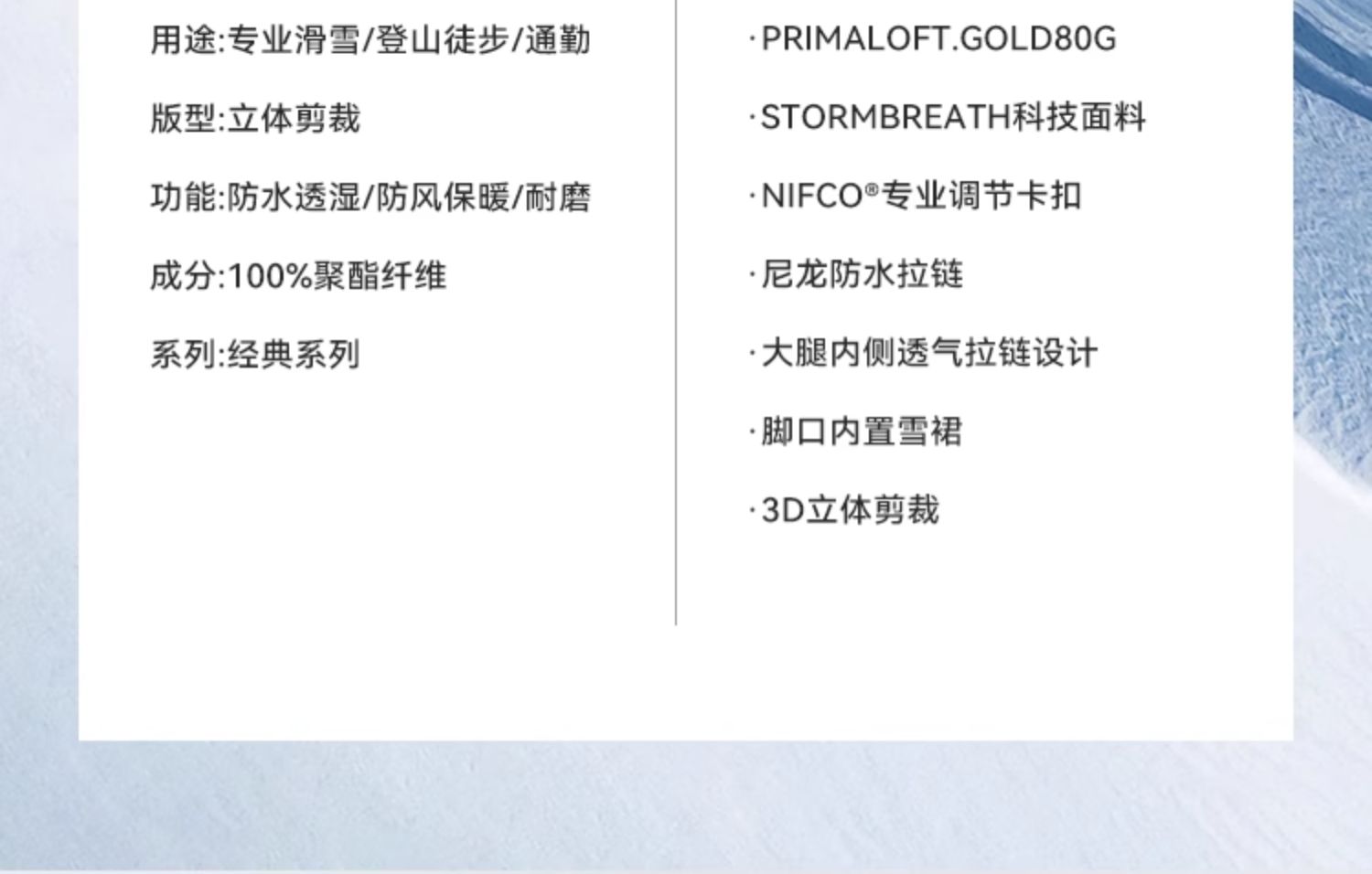 伯希和户外滑雪裤男新款P棉聚暖防水透湿长裤专业单双板滑雪服女