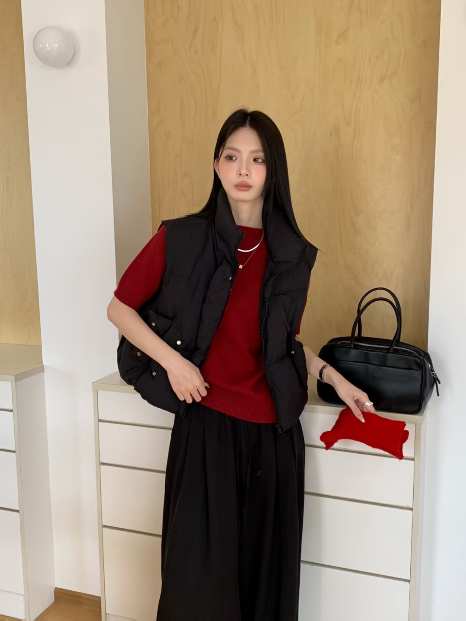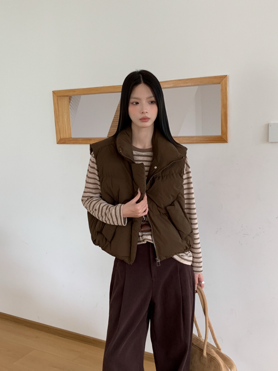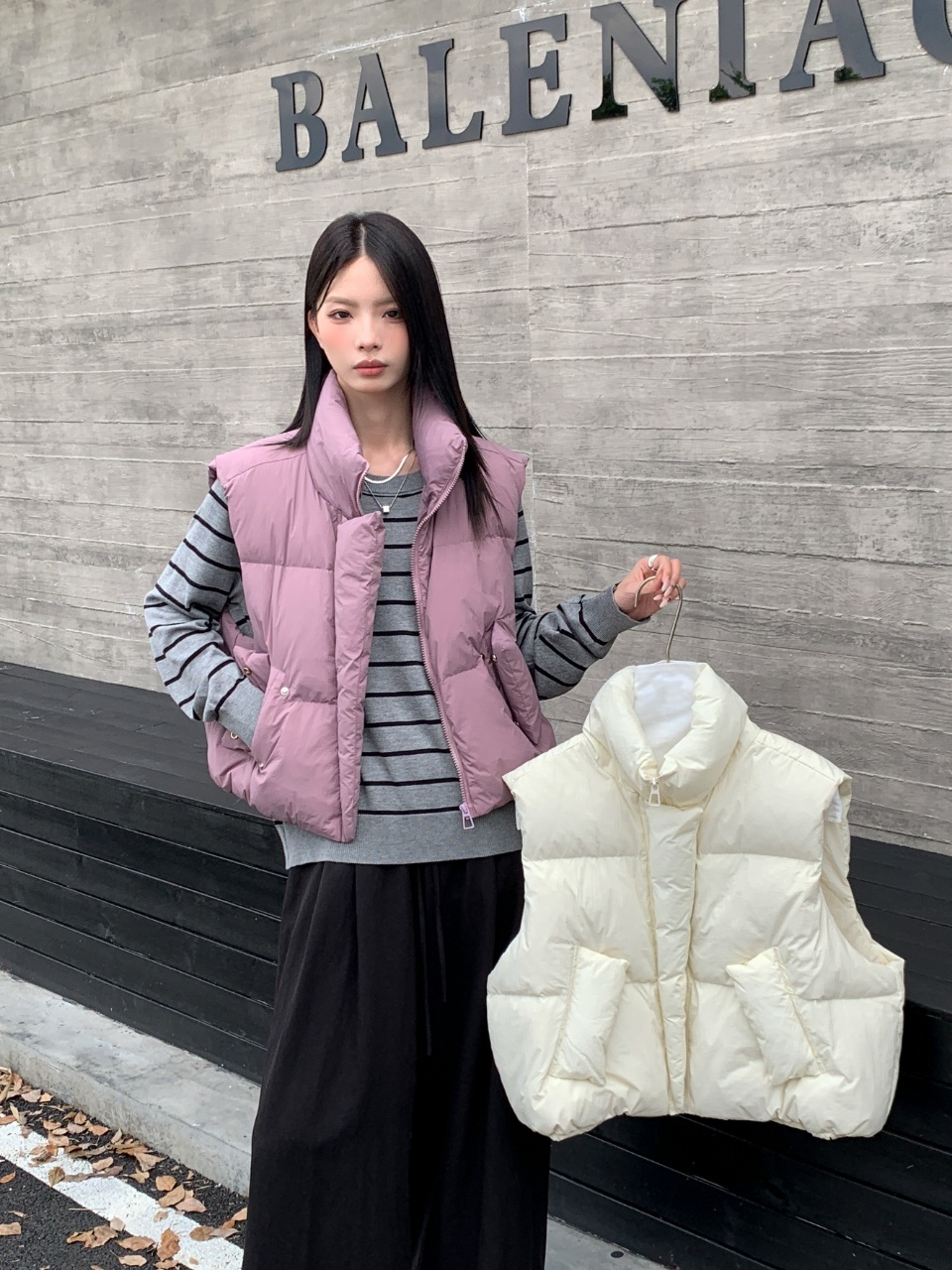 【YW】无忧购 秋冬短款时尚门襟收腰显瘦百搭立领韩版马甲羽绒外套6376(截单后3-5天发货)