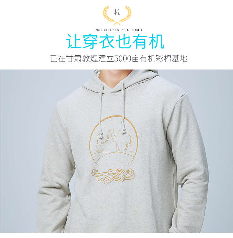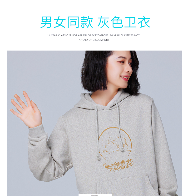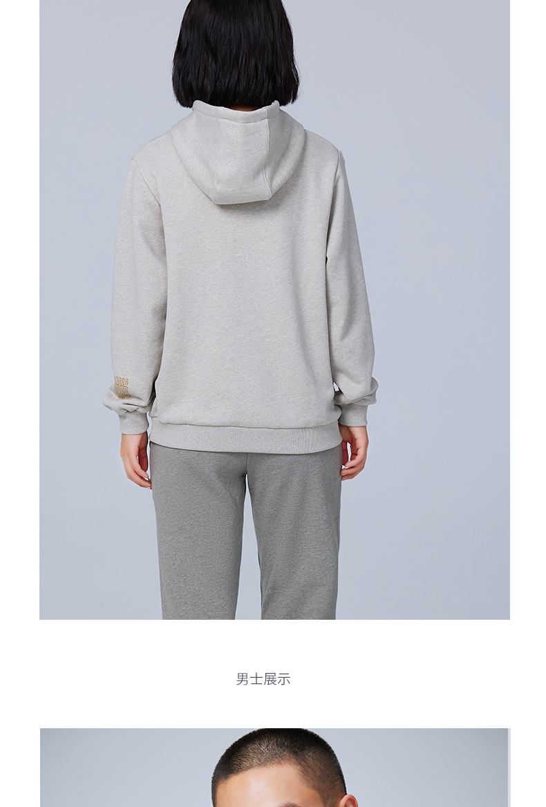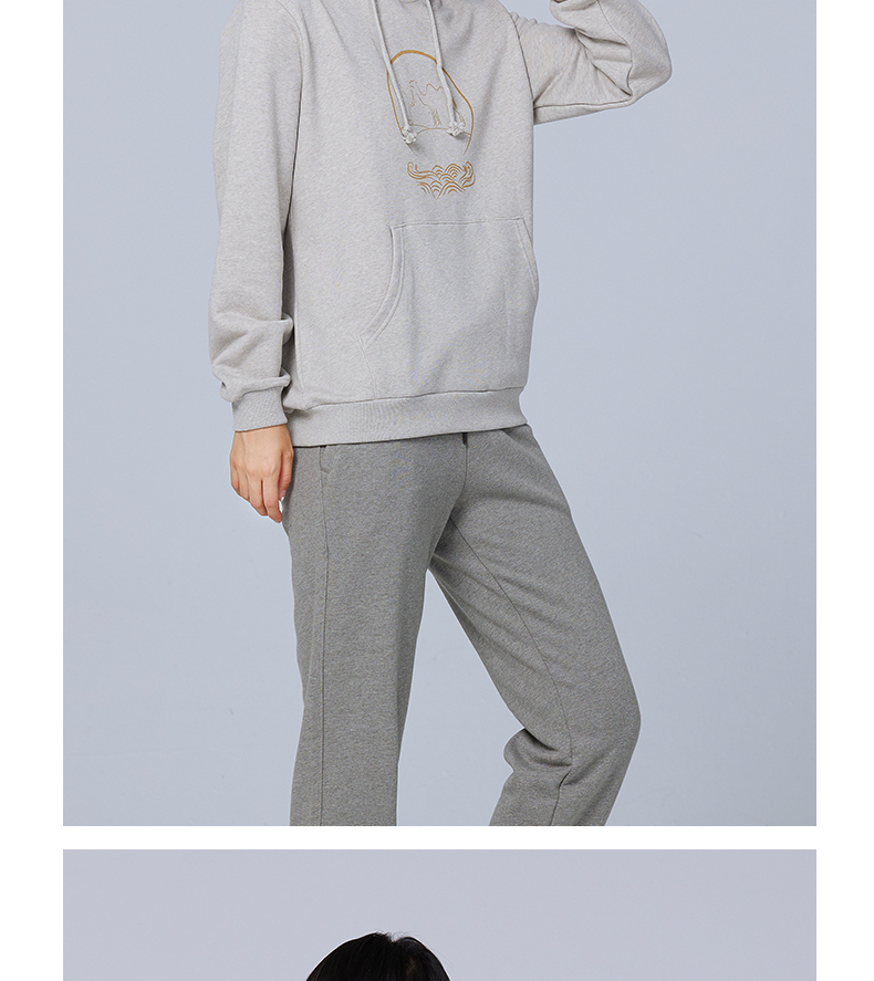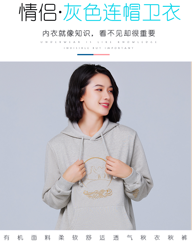 【断码清仓】素道天然有机彩棉情侣连帽卫衣 长袖灰色运动服 套头男女同款休闲