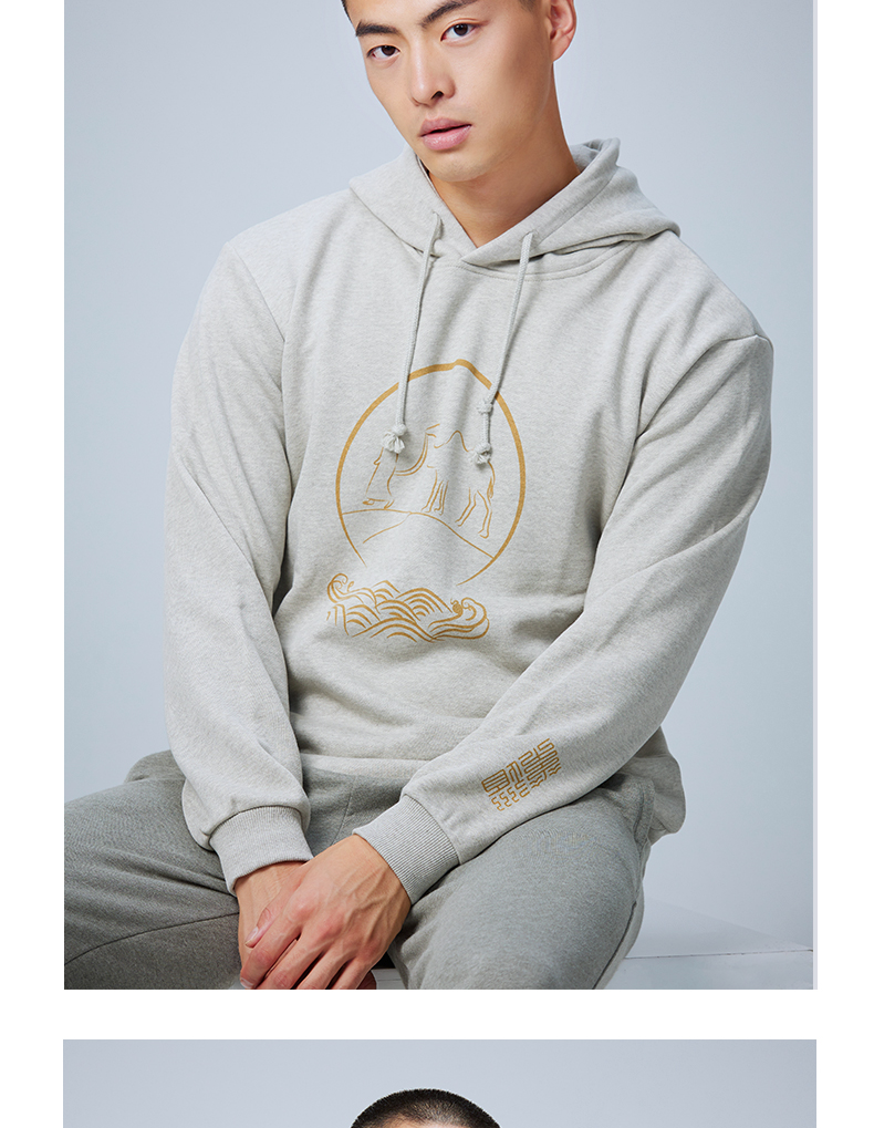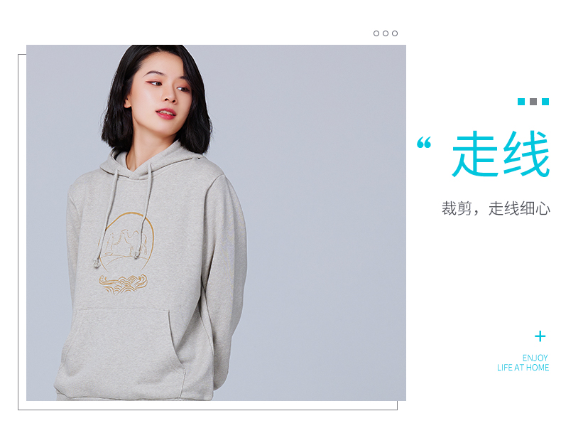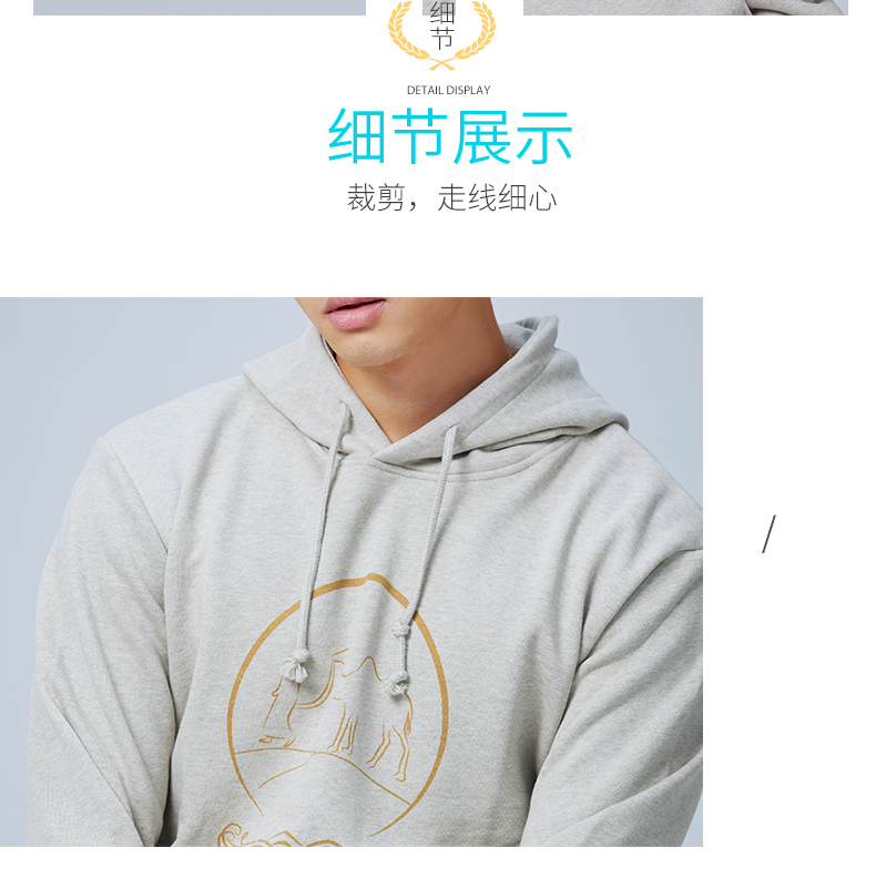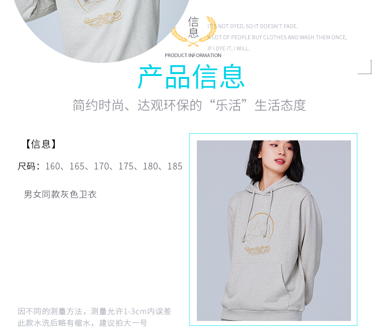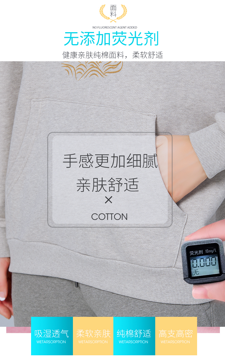 【断码清仓】素道天然有机彩棉情侣连帽卫衣 长袖灰色运动服 套头男女同款休闲