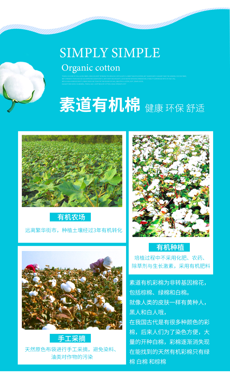 - 素道有机彩棉,源自2005年的健康纺织品牌,为上百万户家庭解决“穿”的健康、“用”的放心的问题。