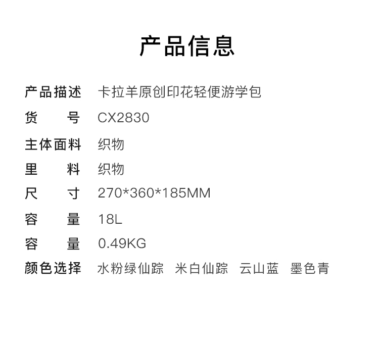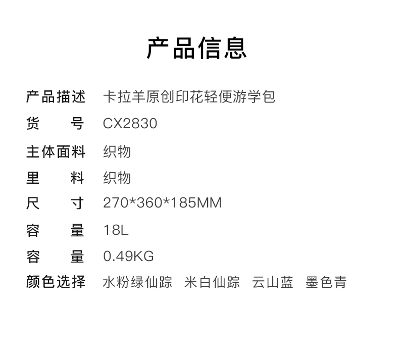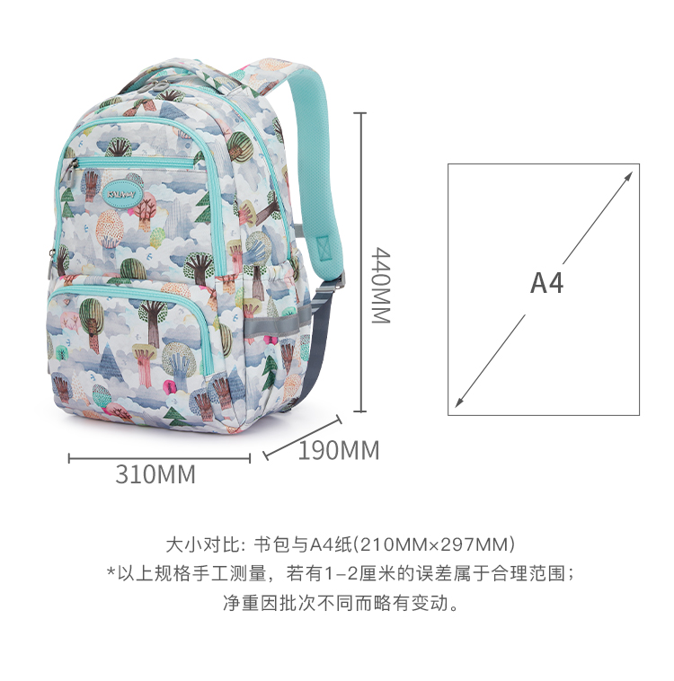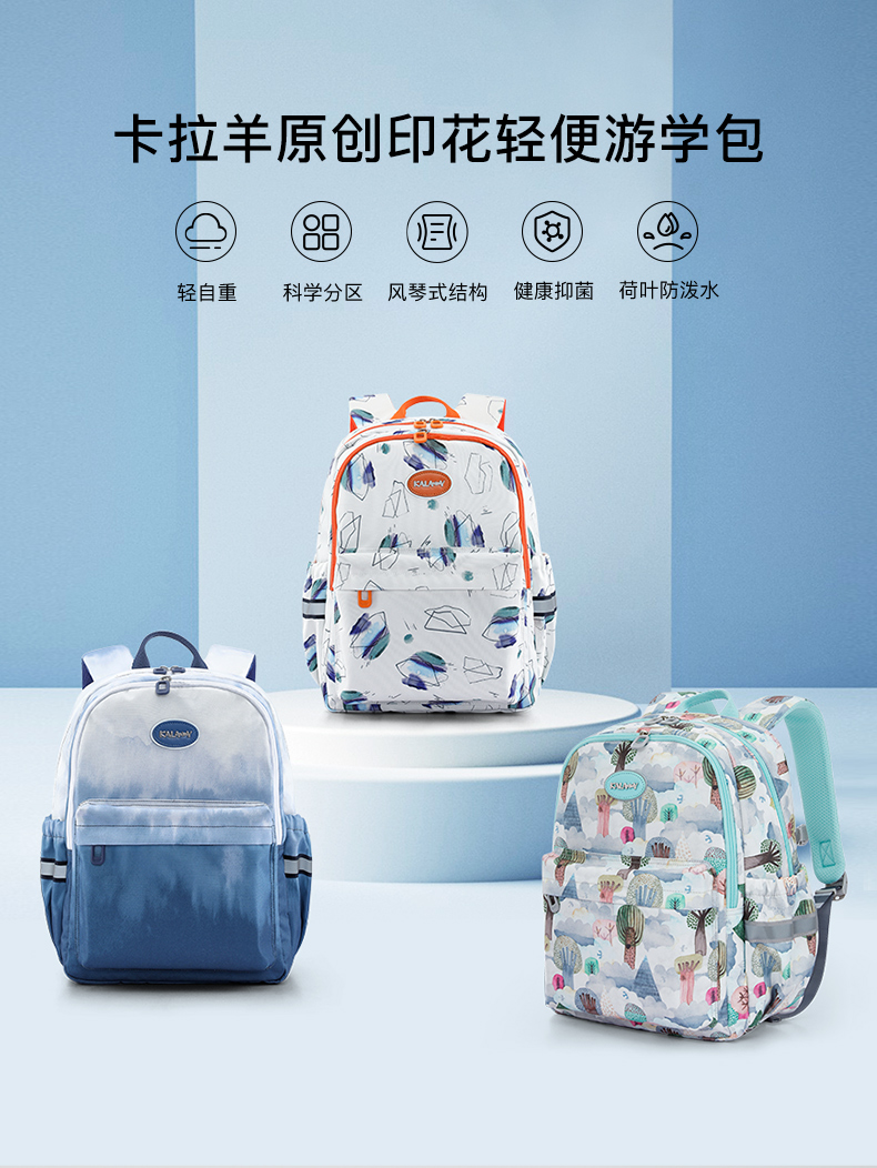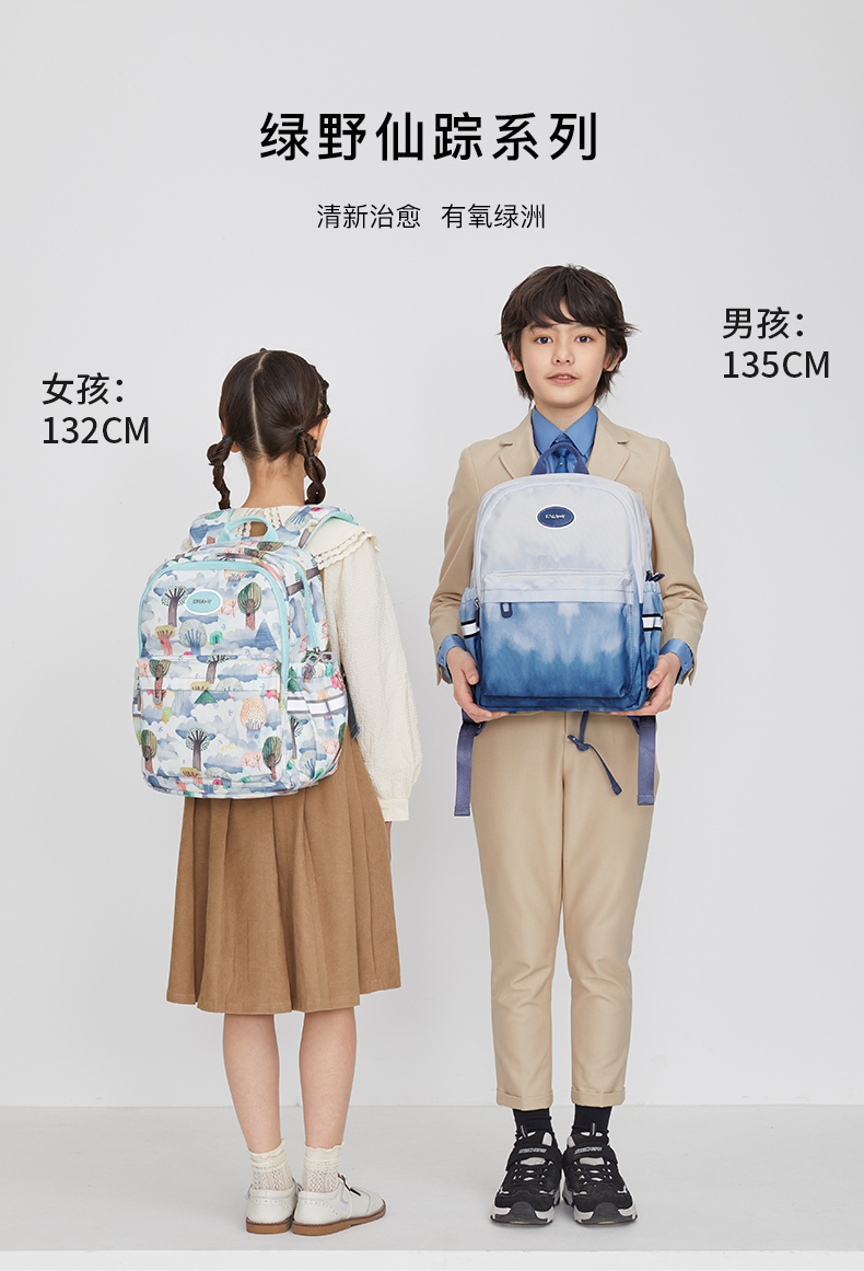 卡拉羊儿童双肩包简约百搭旅游背包男女小学游学包绿野仙踪CX2830+CX5485